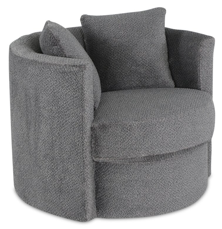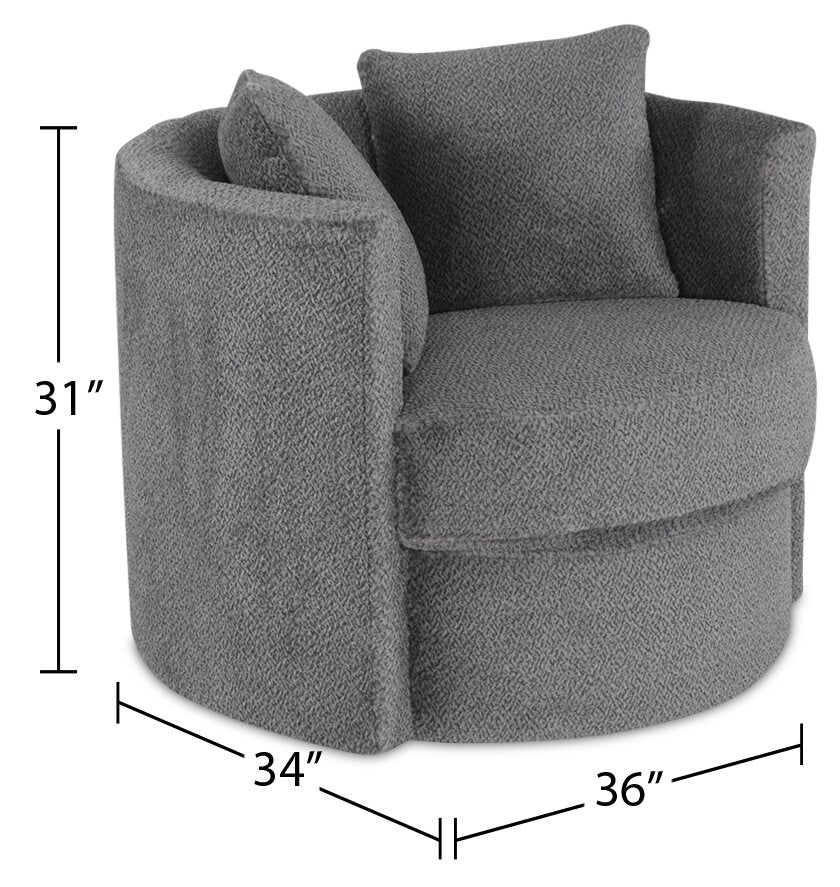 Made in Canada Petite 36" Chenille Fabric Swivel Cuddler Accent Chair - Teddy Nightfall Grey