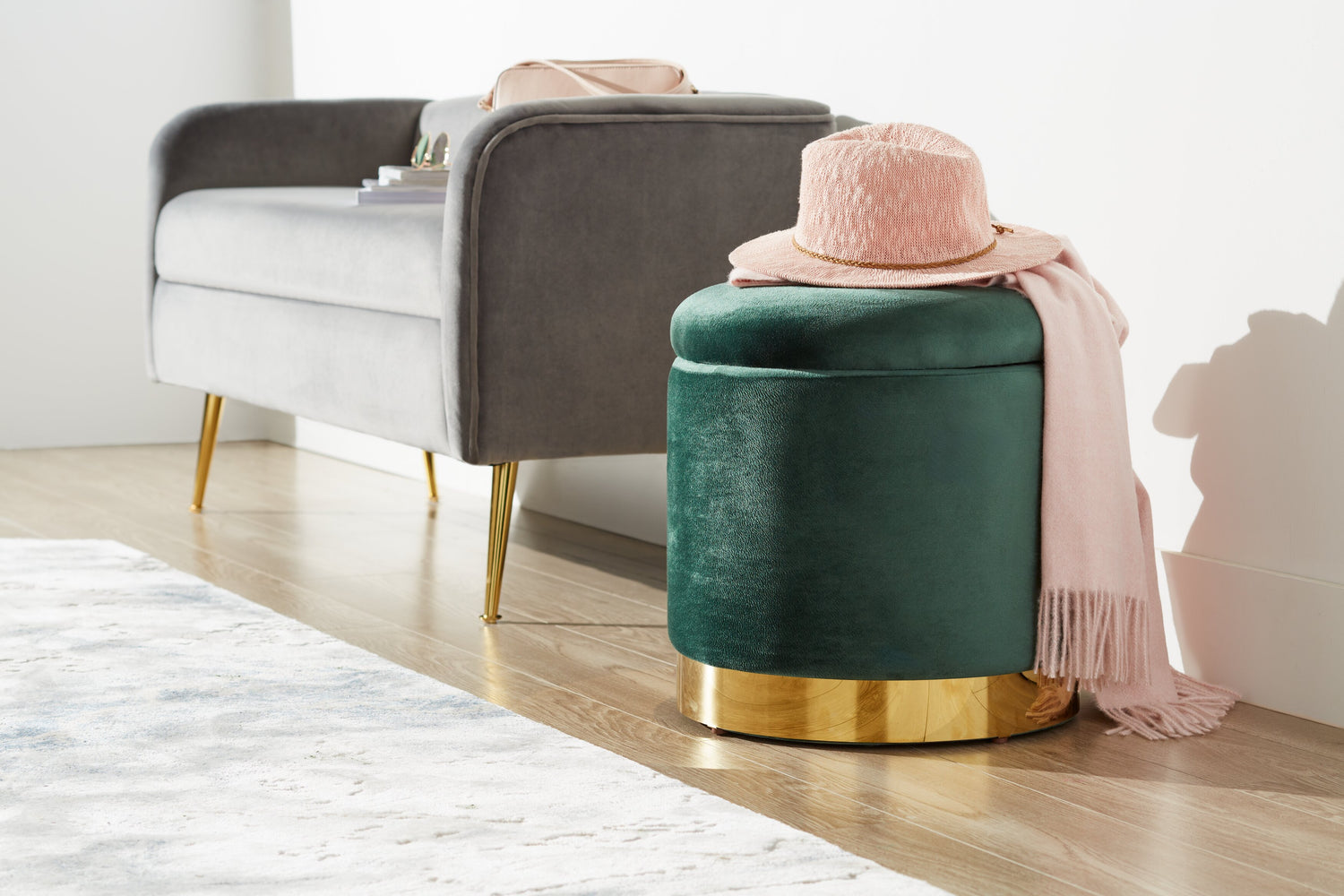 Phebe 16.5" Storage Ottoman with Gold Trim Base - Green
