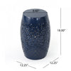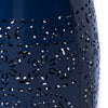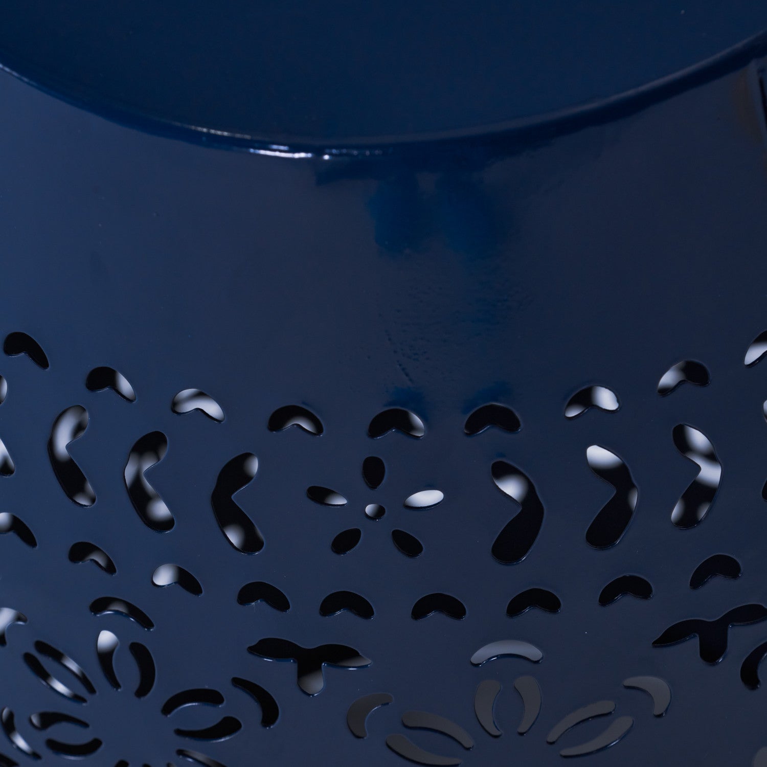 Add a touch of charm to your space with the 12" side table. Crafted from durable iron in a bold navy finish, this barrel-shaped table features a delicate lace-cut design that adds both elegance and function. Ideal for both indoor and outdoor use, it’s perfect beside a chair, in a garden nook, or on the patio. No assembly needed—just unbox and place instantly. Lightweight, stylish, and sturdy, it is the perfect accent for cozy corners or social gatherings.