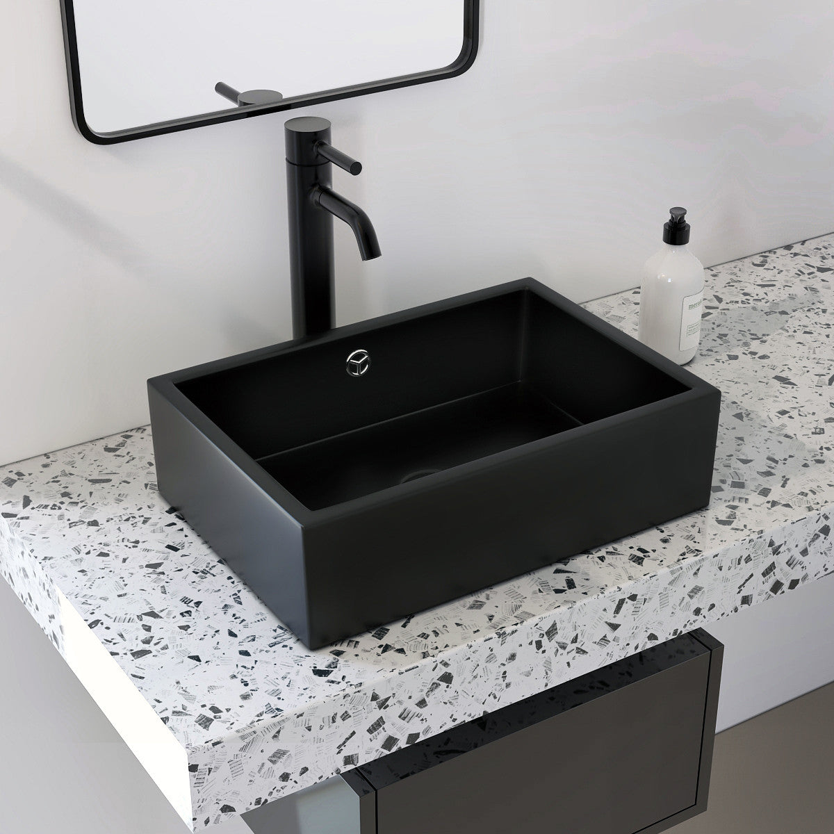 This unique above-the-counter ceramic art basin is a piece of art that will transform your bathroom and will quickly become the center of attraction. The basin has an all matte-black outling that combines design and practicality very well.Recommended for all contemporary bathrooms.