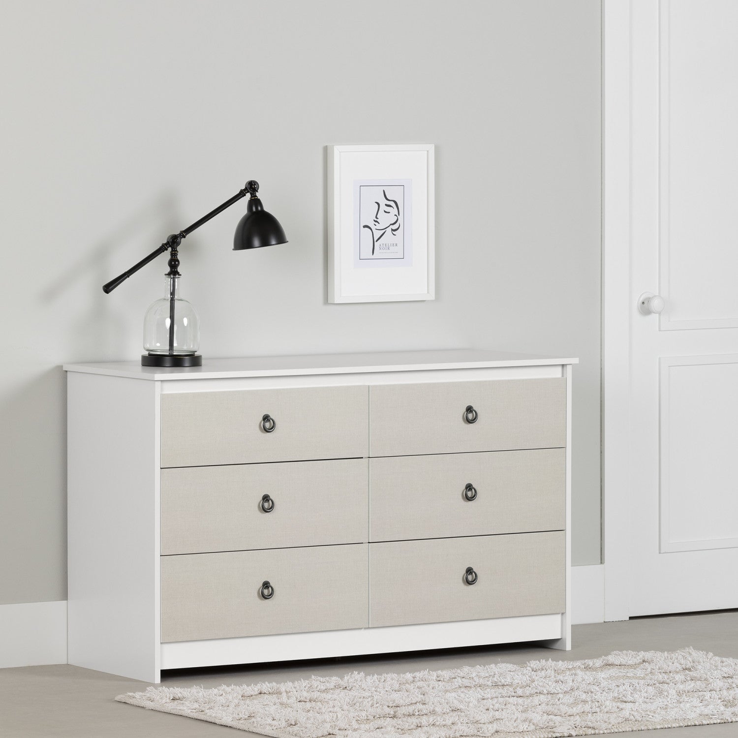 A great storage piece for all those piles of clothes. Six handy drawers for all the space you need in your bedroom – the perfect companion piece to your wardrobe. You’ll love the two-tone blend and striking metal handles – they give this dresser so much personality. For a look of peace in the master bedroom, only this nautical-style furniture will do. The drawer slides are made of metal, for a sturdier piece. This means the drawers can hold 25 pounds, which is plenty for all your clothes.