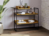 Elevate your space with this modern-industrial console table, where function meets timeless style. Featuring a sturdy black metal frame paired with rich wood-finish shelves, this three-tier piece offers the perfect balance of warmth and structure. The raised-edge shelving design keeps your decor secure while providing ample space for books, decorative accents, or everyday essentials. Whether placed in your entryway, living room, or office, this console table makes a bold yet versatile statement. Its clean lines and earthy tones create a grounded, contemporary look that complements both rustic and urban interiors. Built to last and designed to impress, it’s the ideal piece to organize, display, and inspire.