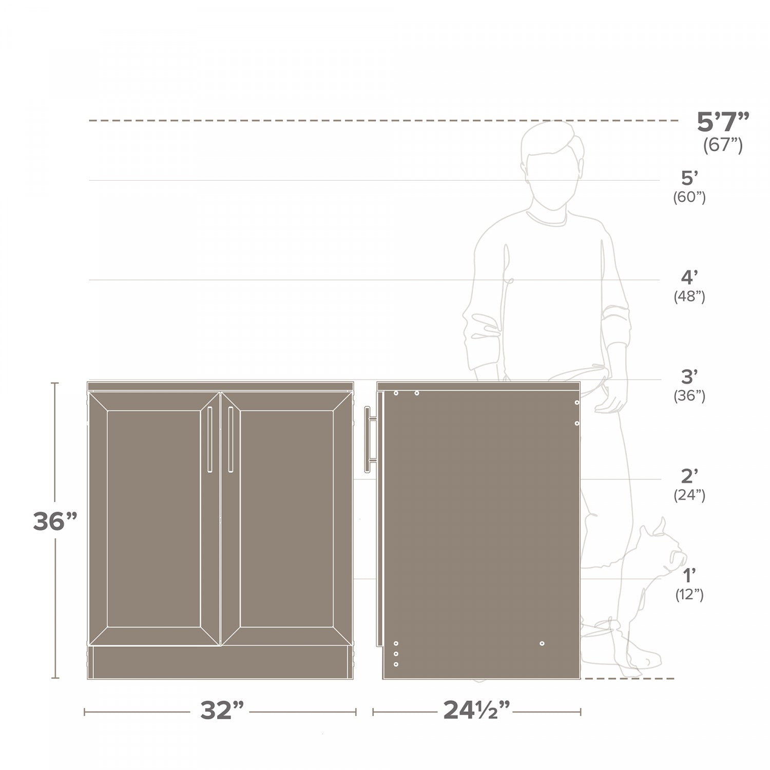 Width: 32" (81.3 cm) Height: 36" (91.4 cm) Depth: 24.5" (62.2 cm)