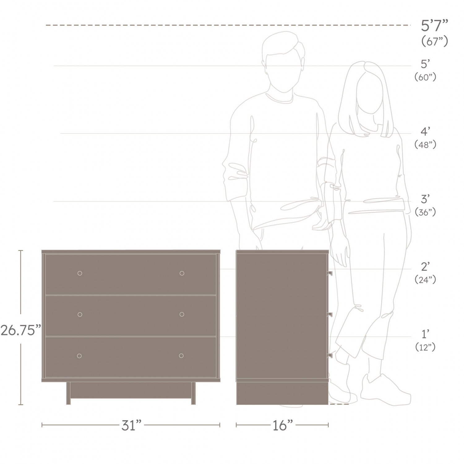 Width: 31" (78.7 cm) Height: 26.75" (67.9 cm) Depth: 16" (40.6 cm)