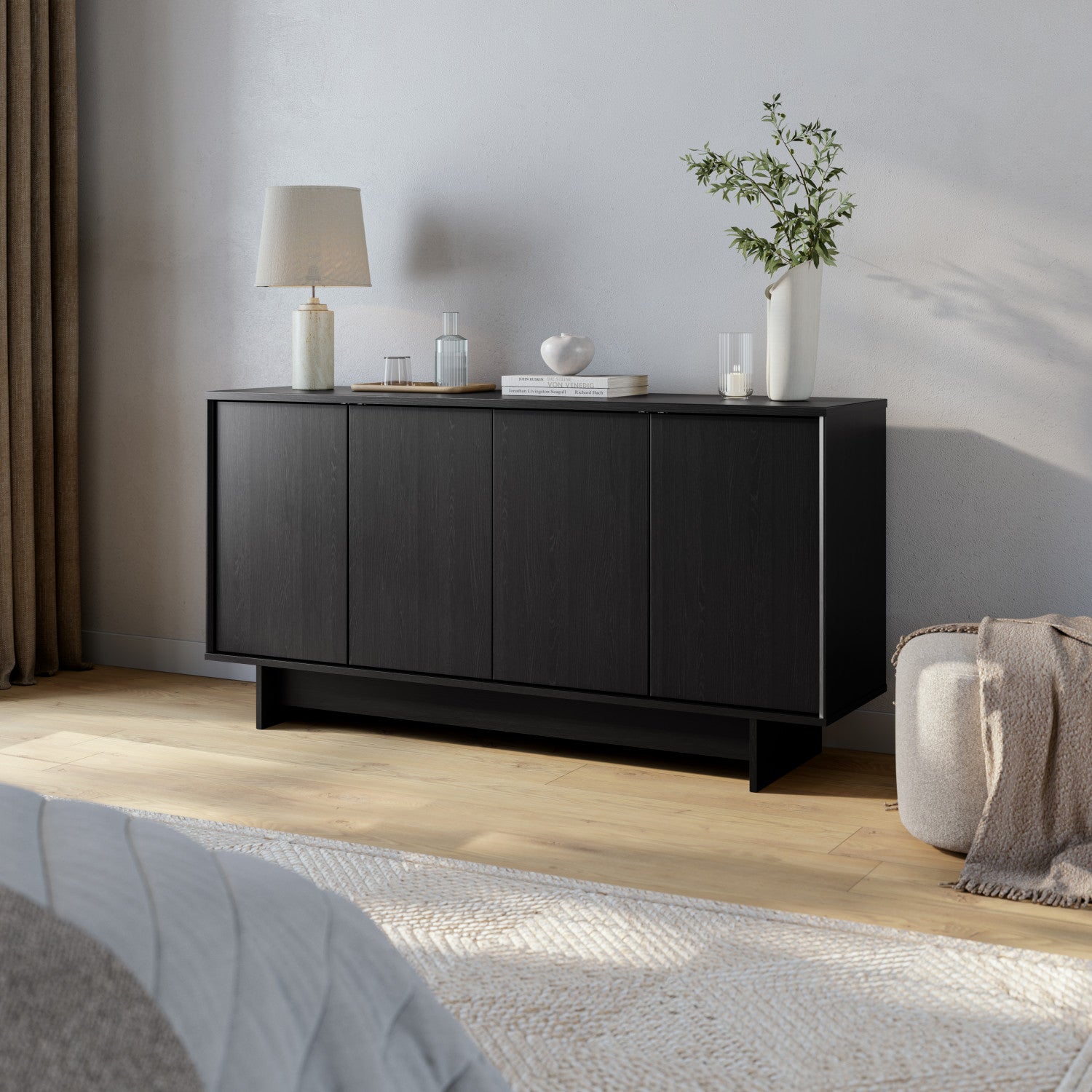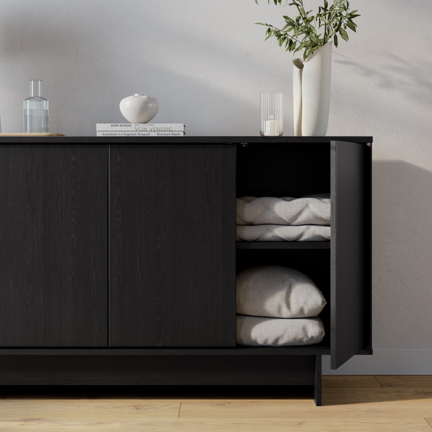 The Finnley Black Oak Sideboard blends minimalist Scandinavian design with functionality, perfect for any room. It features two adjustable shelves and sleek hardware-free doors, offering stylish and customizable storage.