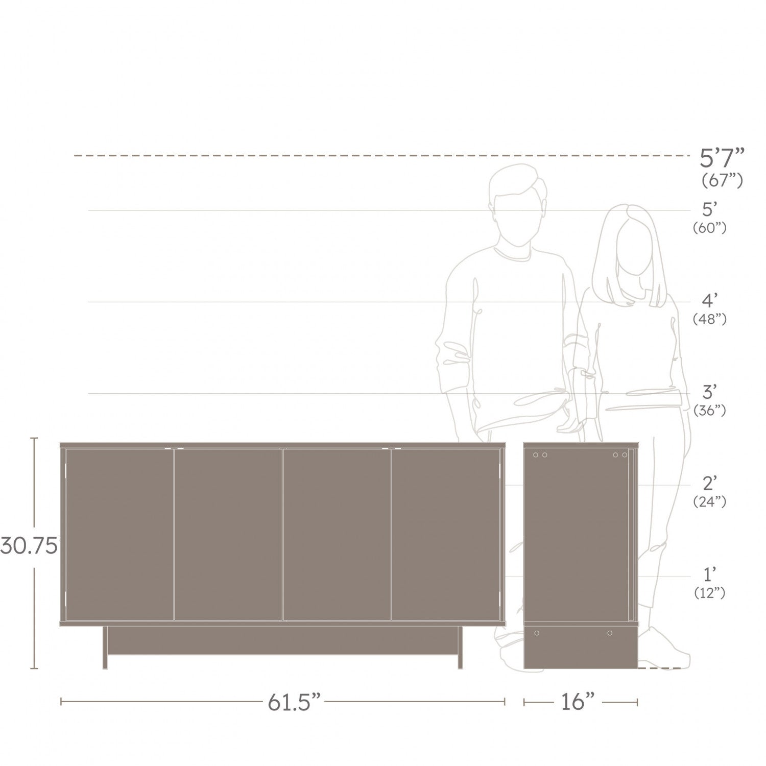 Width: 61.5" (156.2 cm) Height: 30.75" (78.1 cm) Depth: 16" (40.6 cm)