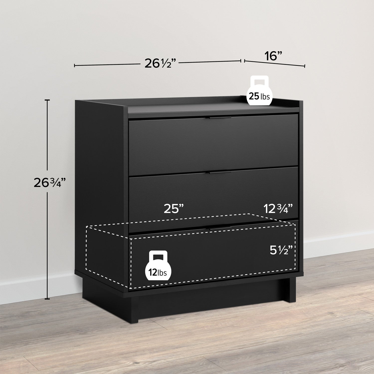Width: 26.5" (67.3 cm) Height: 26.75" (67.9 cm) Depth: 16" (40.6 cm)