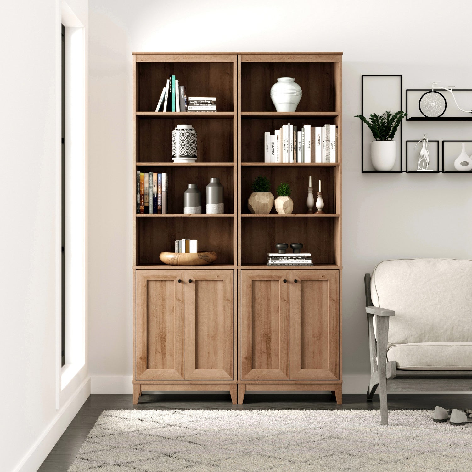 The Yaletown Bookcase Storage Cabinet offers chic functionality with a clean design and real wood tapered legs, making it suitable as a buffet, bookshelf, or display cabinet. Featuring two miter doors and three adjustable shelves, it holds 20 pounds each and arrives flat-packed for easy assembly.