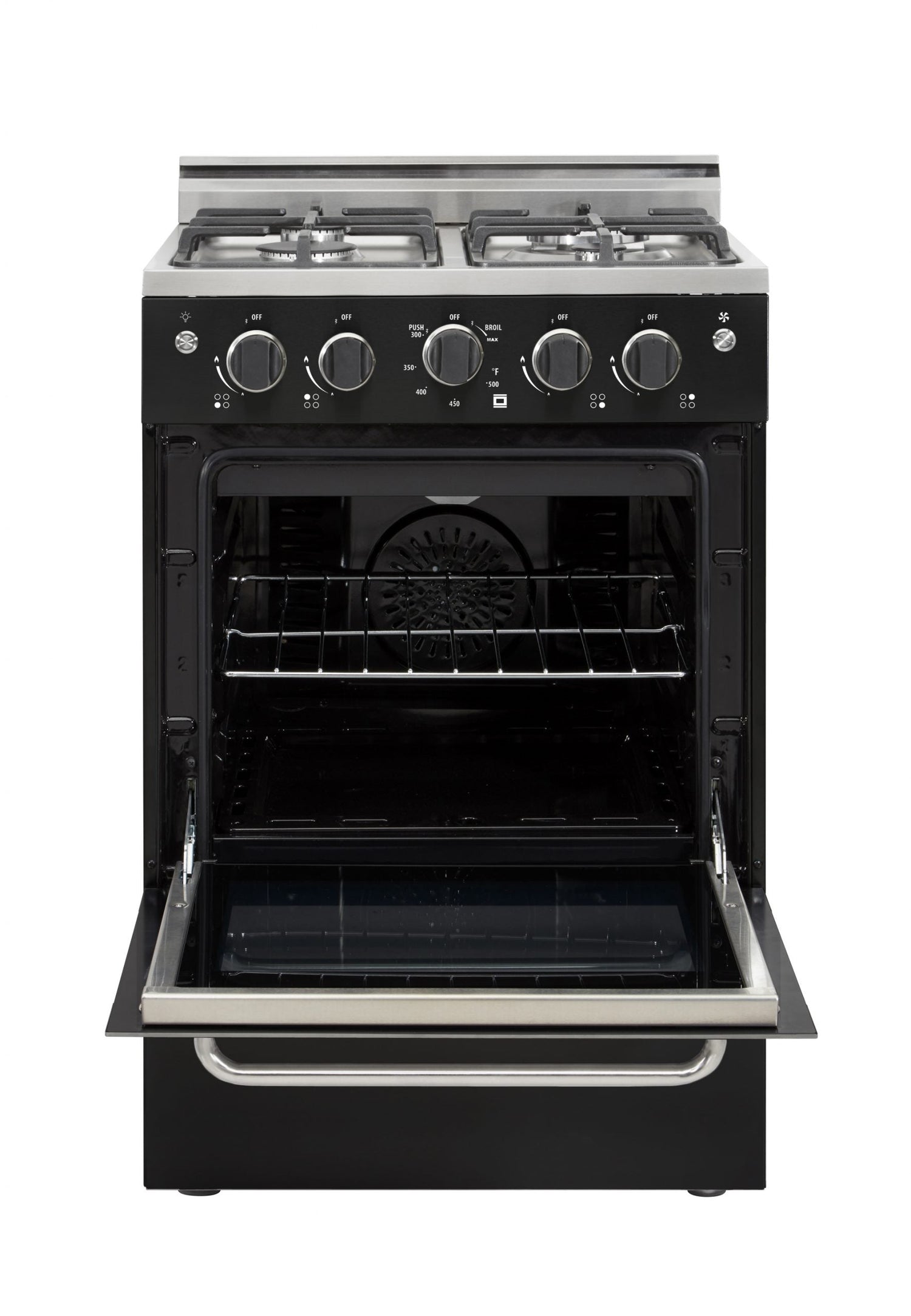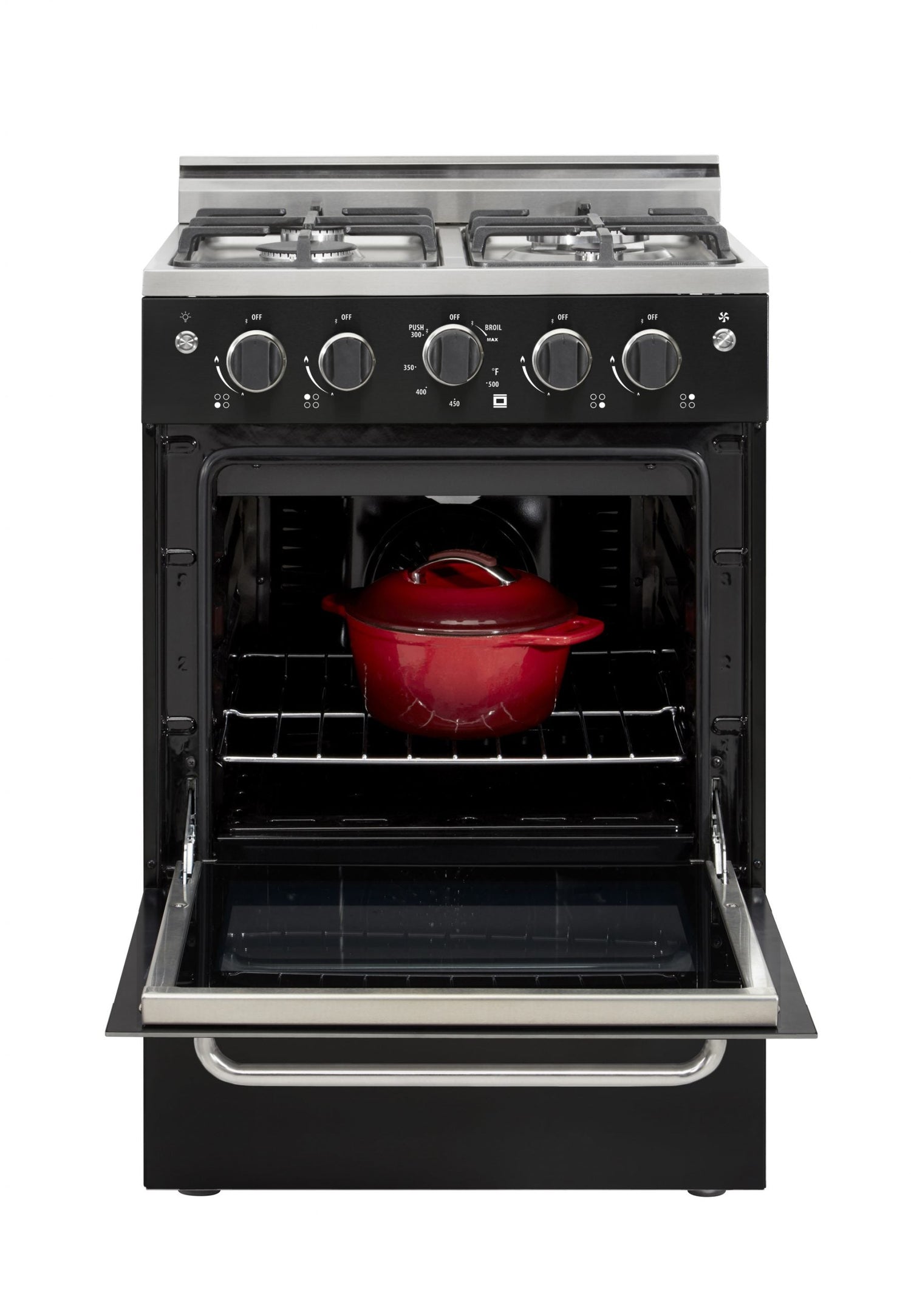 Compact kitchen spaces deserve all the style, convenience, and impact found in bigger spaces. That’s why the Prestige collection 24” stove packs all the power of larger appliances without compromising on great design. Whether you’re looking to find the right piece for your condo, cabin, or other home away from home, you’re sure to appreciate all the convenience this stove offers—from convection cooking for perfectly even heat, to a waist-high broiler for intense searing, as well as cast-iron grates, sealed burners, automatic electric spark ignition, and a compartment for extra storage. Cooking and cleaning are completely effortless.