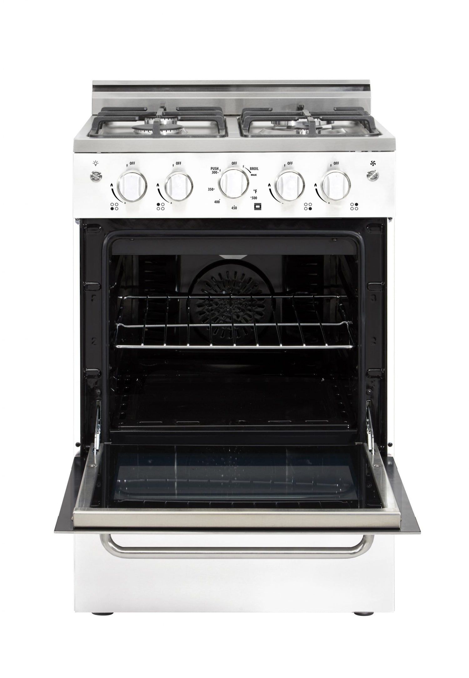 Compact kitchen spaces deserve all the style, convenience, and impact found in bigger spaces. That’s why the Prestige collection 24” stove packs all the power of larger appliances without compromising on great design. Whether you’re looking to find the right piece for your condo, cabin, or other home away from home, you’re sure to appreciate all the convenience this stove offers—from convection cooking for perfectly even heat, to a waist-high broiler for intense searing, as well as cast-iron grates, sealed burners, automatic electric spark ignition, and a compartment for extra storage. Cooking and cleaning are completely effortless.