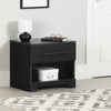 This nightstand with a cutout kick plate will give your bedroom a contemporary and distinguished look. To maximize bedside storage, it features an open storage space and a drawer decorated with an elegant metal handle. With a sturdy tabletop suitable for a lamp, cell phone and your current book, this bedroom cabinet meets all your storage needs. Featuring an open easy-access storage space ideal for bedside reading materials, the bedroom nightstand also includes a convenient and practical drawer with smooth metal drawer slides and a durable metal handle. The open-bottom storage is the perfect place to store smaller personal items for easy access, while the drawer is suitable for your essentials or accessories.