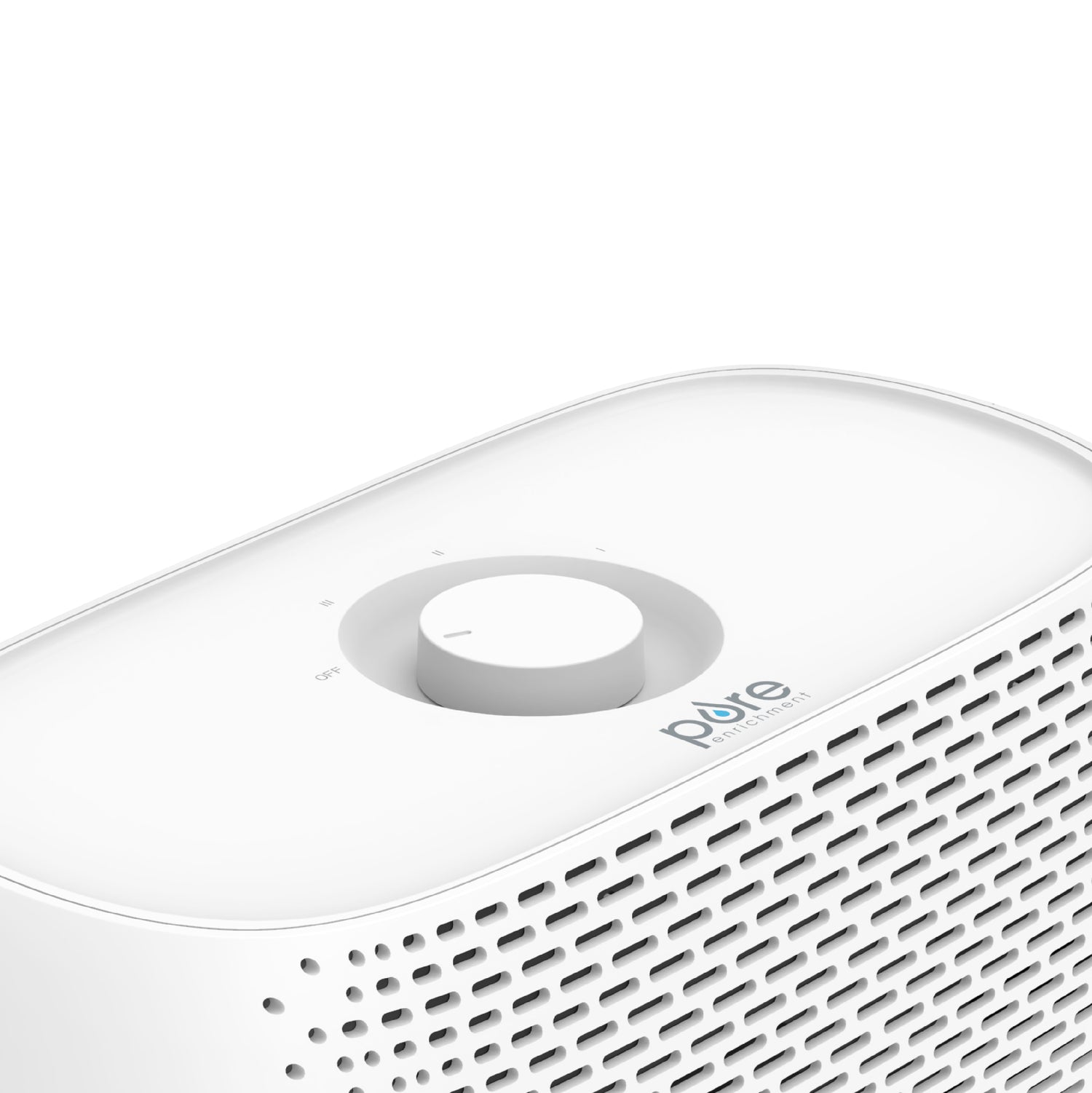 Make way for a fresh breeze of clean air in every room with the PureZone™ Breeze tabletop air purifier from Pure Enrichment. Enjoy improved air quality as the premium two-stage filter safely cleans the air in bedrooms, offices and nurseries. This modern tabletop air purifier fits perfectly on any desk, nightstand or end table while its True HEPA filter removes 99.97% of particles as small as 0.3 microns. Simply plug it in and adjust the control knob to your choice of low, medium or high speeds to start enjoying fresher air at home. PureZone Breeze provides a gentle breeze, less than a desk fan, but enough to temporarily cool the air and promote a calm and relaxing atmosphere. The airflow vents push purified air through the unit, providing you with a light breeze of clean air. Every six months replace the filter with a genuine Pure Enrichment air filter to ensure your unit continues to work effectively.