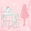 | Key Features | ● Two-piece set includes a vanity table and a matching stool ● Tri-folding mirror ensures safety and dual-use functionality ● After detaching the mirror top, converting to a desk for studying ● Included drawer helps organize accessories and keepsakes ● Constructed with MDF and rounded edges for child safety ● Great for bedroom, playroom, or nursery placement ● Assembly required, fostering a fun parent-child activity. |