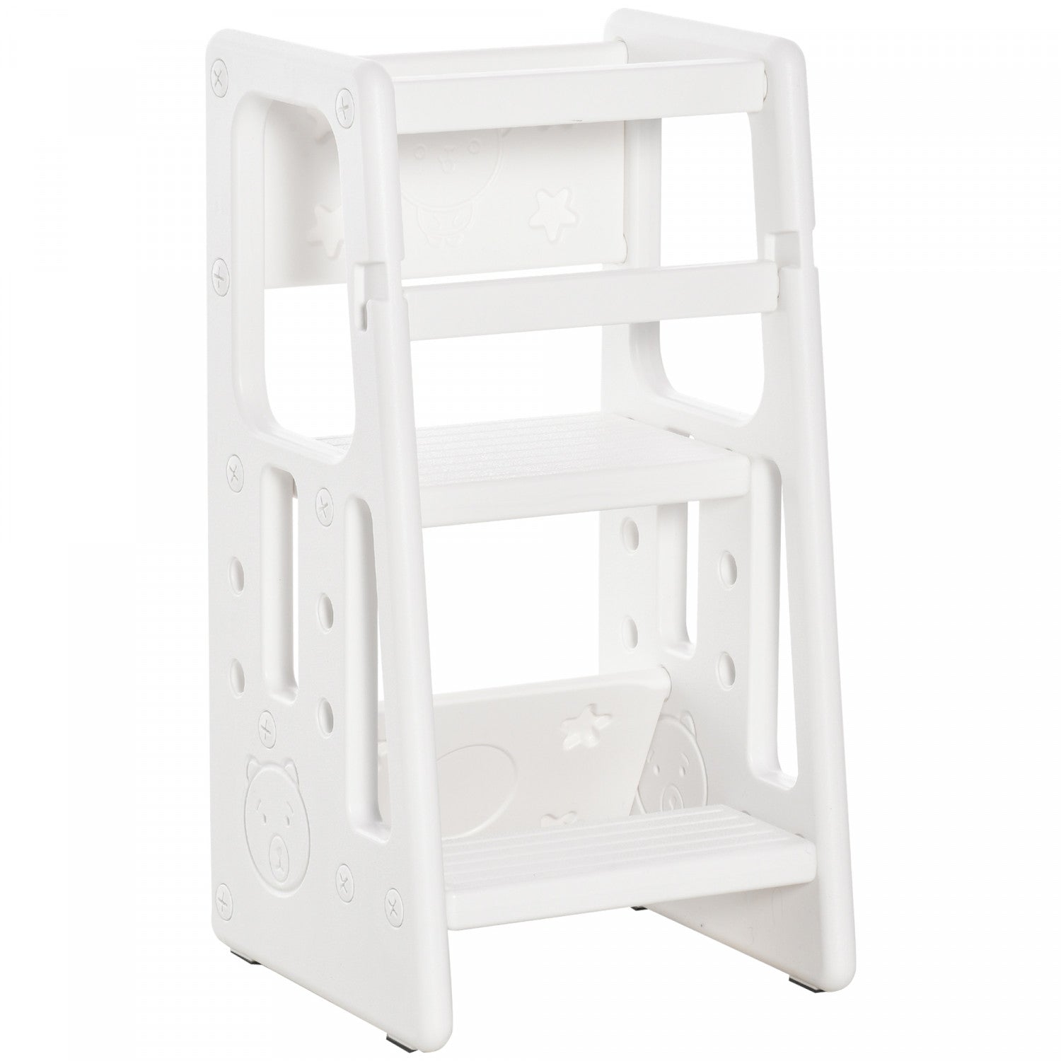 | Key Features | ● Made of HDPE material which is non-toxic and does not contain an unpleasant odor; ● Uniquely designed with three adjustable built-in platform heights, which can adjust to different heights based on your preference; ● Suitable for many occasions such as kitchen, washroom and dining room and bedroom; ● Specially designed with effortless installation, less hardware, and less time; ● Anti-slip mat prevents kids from falling; ● Suitable for kids age between 18 months old to 5 years old; ● Assembly required; |
