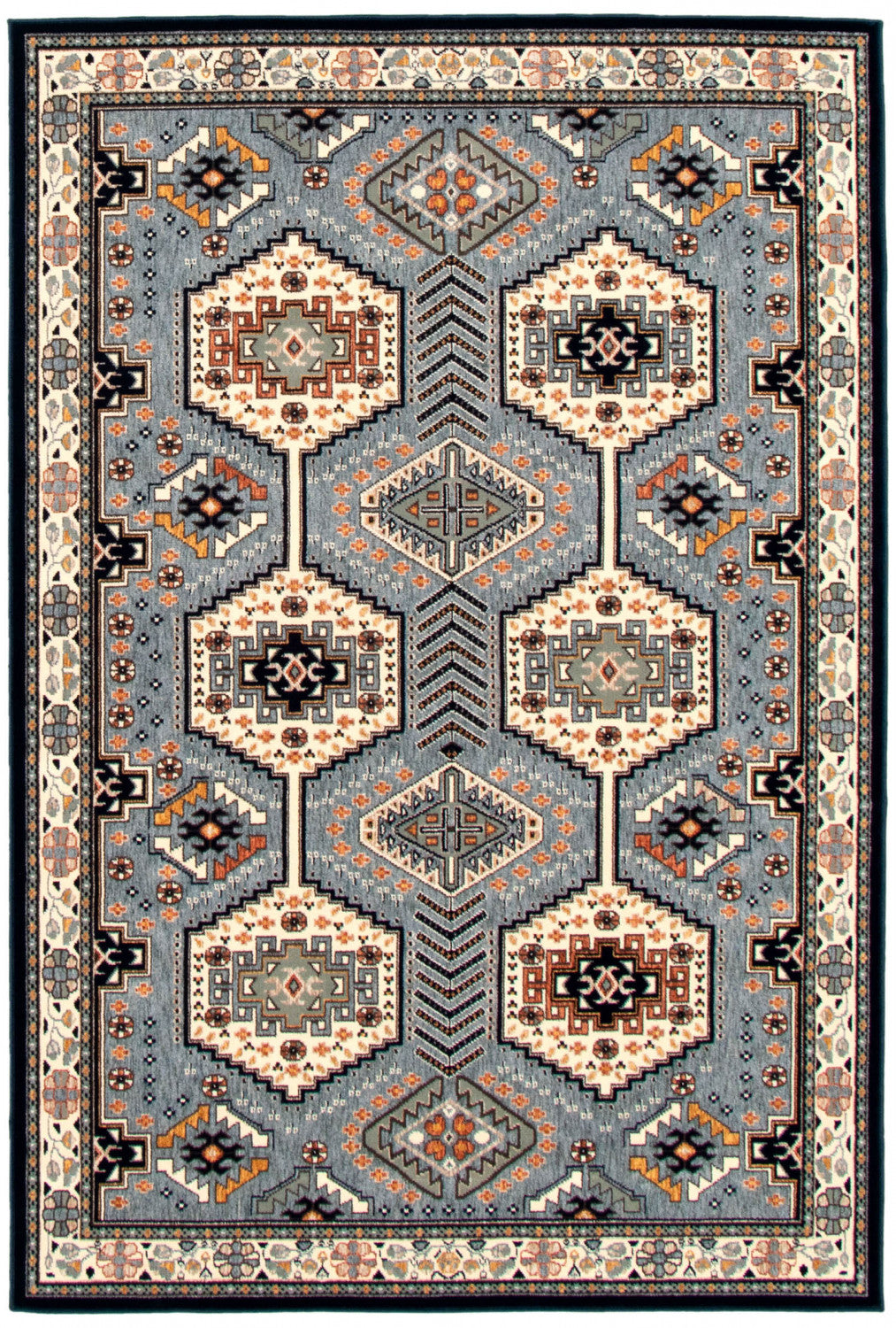 Bring some casual and contemporary vibes into your home with this abstract area rug. The dark grey, navy, tan and ivory tones will bring any room alive. Impress visitors with your refined decorating skills.