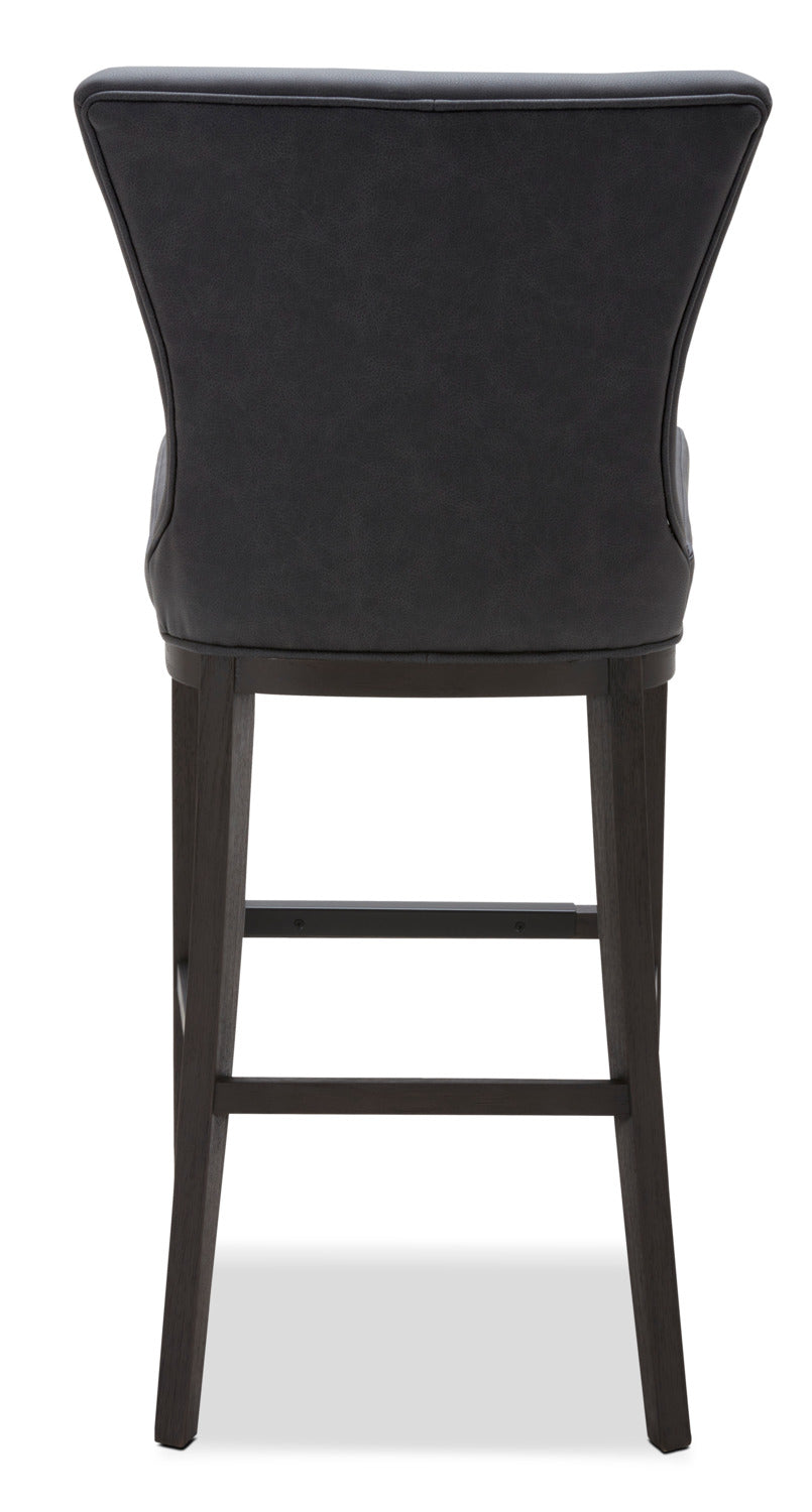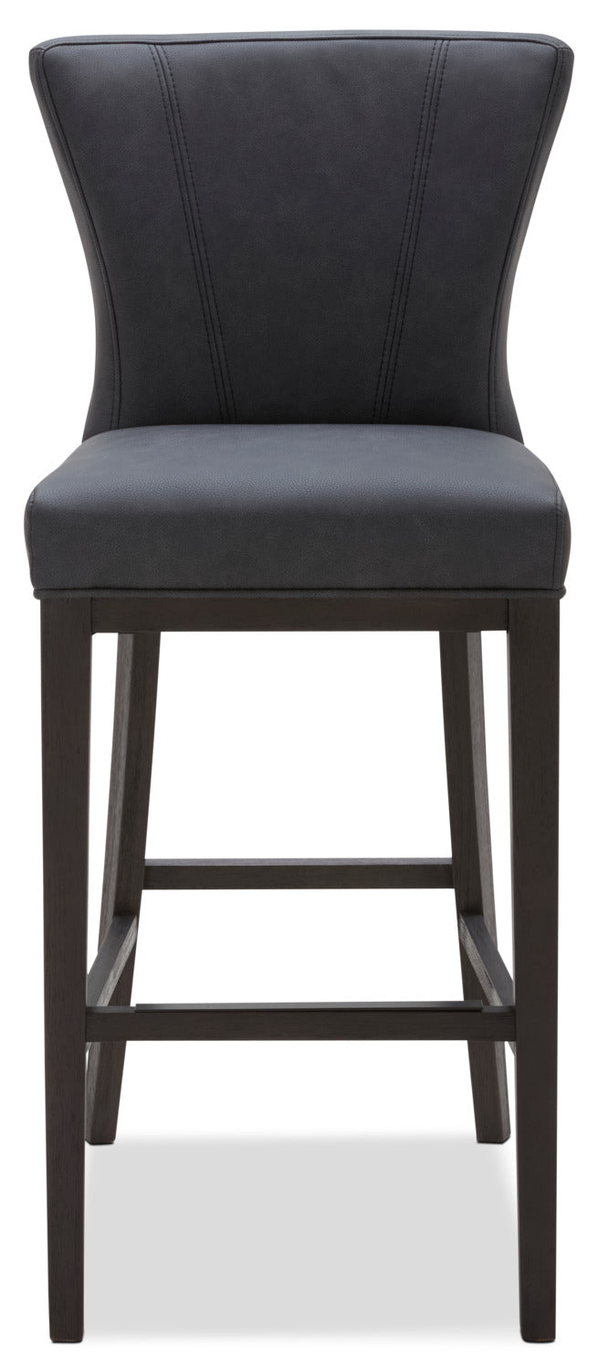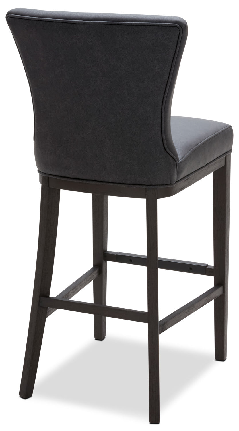 Sit up tall in this handsome Quinn bar stool. When you need to elevate your casual dining space, there's no better way than climbing onto this cushy padded seat and planting your feet on the wooden footrest. The lustrous leather-look fabric with accent stitching is likely to steal stares from your friends and family. Whether you pull up a seat to the kitchen counter or create a cozy atmosphere around a pub table, you've got the perfect option with this versatile stool.