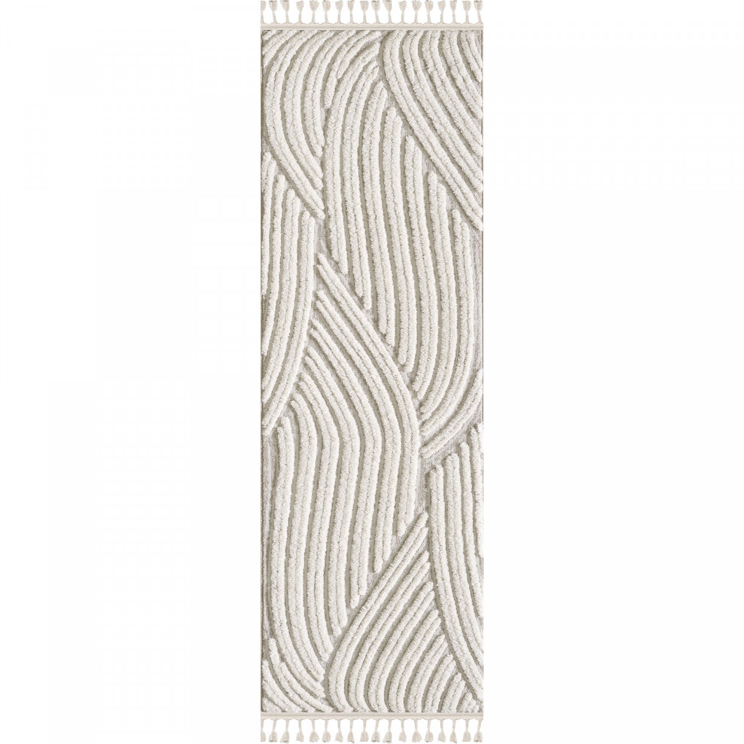 This beautiful shag area rug features an exquisite wavy design and a neutral light cream pile. Whether you are looking for a stunning centrepiece for the living room, a comfortable nursery rug for the bedroom, or a cozy spot to place your feet on at the dinner table, this 3D hi-low geometric carpet will not disappoint. The plush and dense pile of this carpet measures 0.67 inches (17 mm) in height. The use of 100% polypropylene material and fine European weaving technology ensures this rug looks great over time.