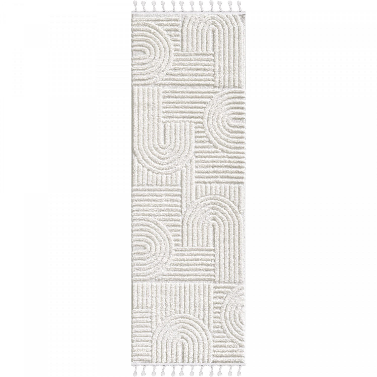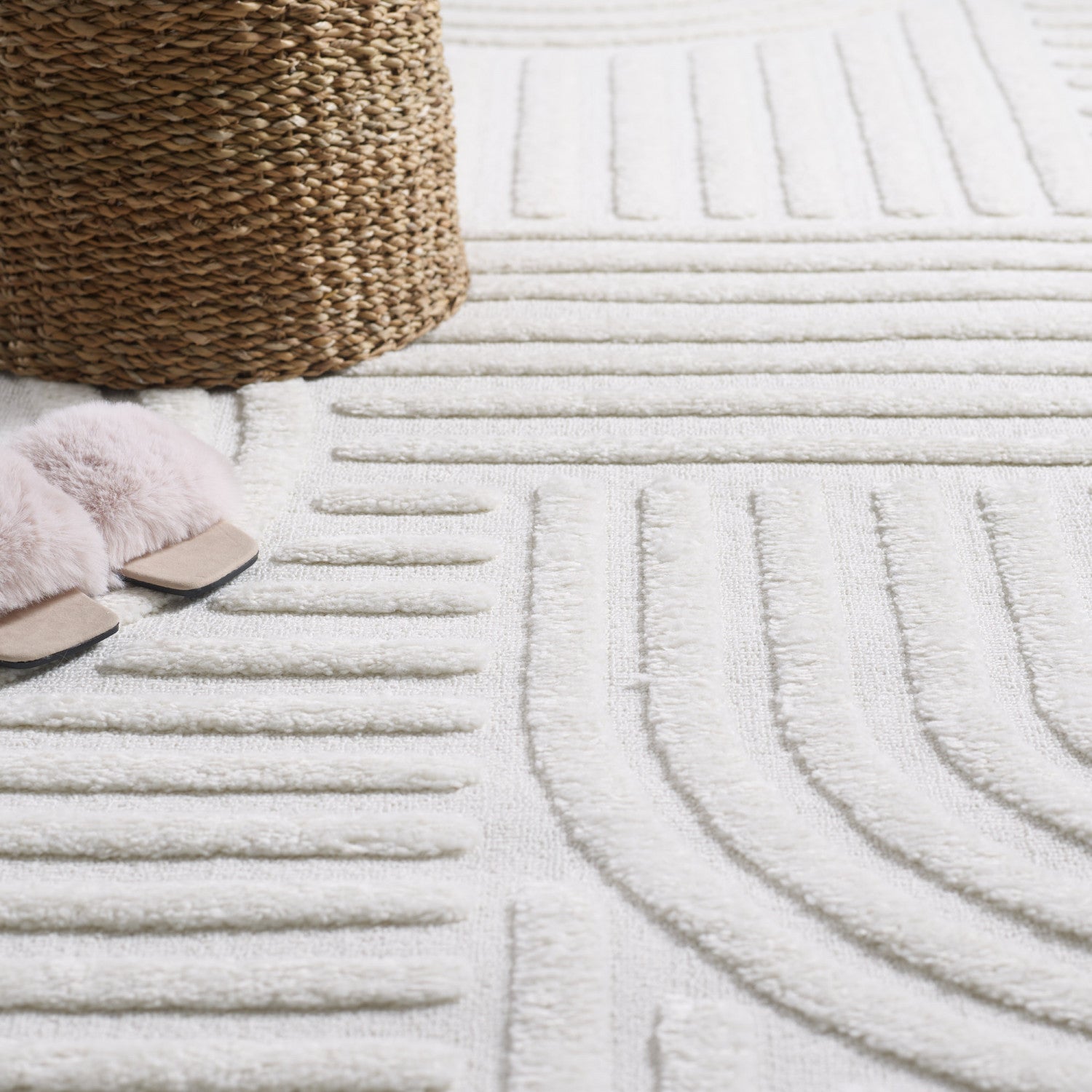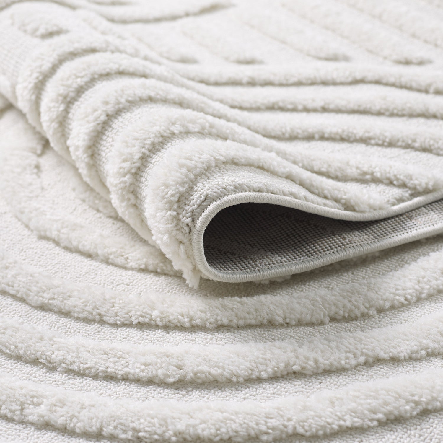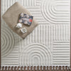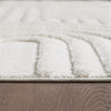 This beautiful shag area rug features an exquisite Curves design and a neutral light cream pile.