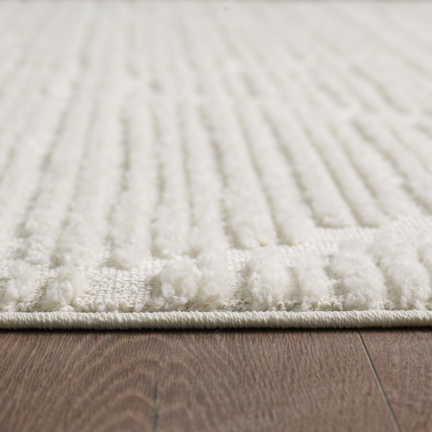 This beautiful shag area rug features an exquisite trellis design and a neutral light cream pile. Whether you are looking for a stunning centrepiece for the living room, a comfortable nursery rug for the bedroom, or a cozy spot to place your feet on at the dinner table, this 3D hi-low geometric carpet will not disappoint. The plush and dense pile of this carpet measures 0.67 inches (17 mm) in height. The use of 100% polypropylene material and fine European weaving technology ensures this rug looks great over time.