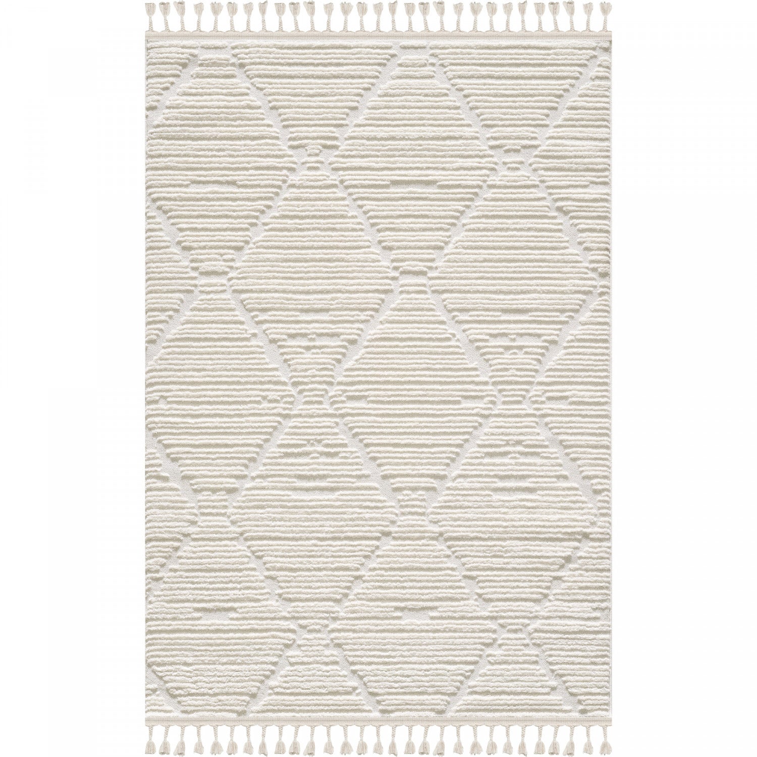 This beautiful shag area rug features an exquisite trellis design and a neutral light cream pile. Whether you are looking for a stunning centrepiece for the living room, a comfortable nursery rug for the bedroom, or a cozy spot to place your feet on at the dinner table, this 3D hi-low geometric carpet will not disappoint. The plush and dense pile of this carpet measures 0.67 inches (17 mm) in height. The use of 100% polypropylene material and fine European weaving technology ensures this rug looks great over time.