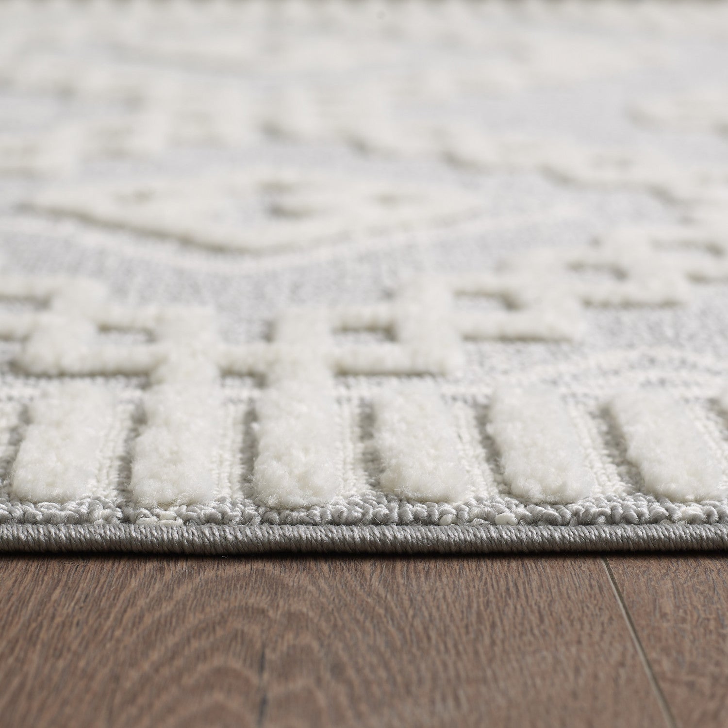 This beautiful shag area rug features an exquisite Moroccan design and a neutral light cream pile. Whether you are looking for a stunning centrepiece for the living room, a comfortable nursery rug for the bedroom, or a cozy spot to place your feet on at the dinner table, this 3D hi-low geometric carpet will not disappoint. The plush and dense pile of this carpet measures 0.67 inches (17 mm) in height. The use of 100% polypropylene material and fine European weaving technology ensures this rug looks great over time.