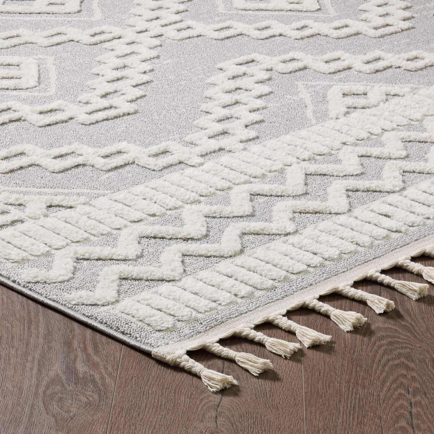 This beautiful shag area rug features an exquisite Moroccan design and a neutral light cream pile. Whether you are looking for a stunning centrepiece for the living room, a comfortable nursery rug for the bedroom, or a cozy spot to place your feet on at the dinner table, this 3D hi-low geometric carpet will not disappoint. The plush and dense pile of this carpet measures 0.67 inches (17 mm) in height. The use of 100% polypropylene material and fine European weaving technology ensures this rug looks great over time.
