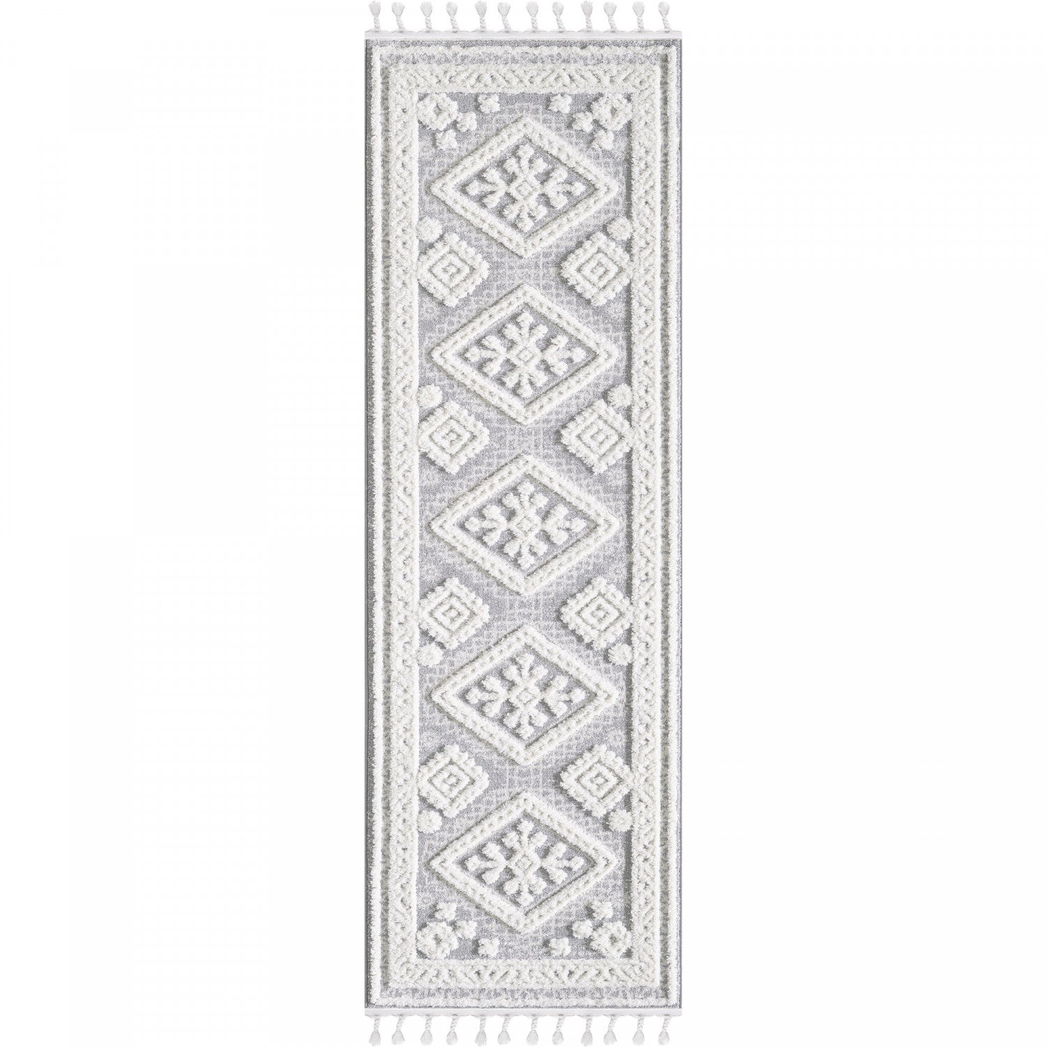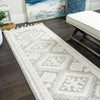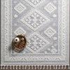 This beautiful shag area rug features an exquisite Medallion Geometric design and a neutral light cream and grey pile.