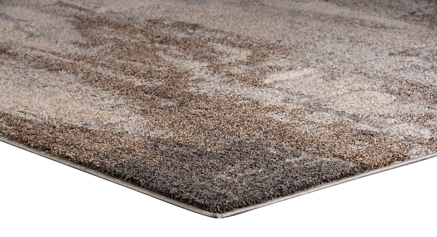 Spice up your family room floor with this Ranier Boxholm area rug. Cream and grey fibres in different pile heights create a dramatic 3D effect in any room. Your tender tootsies will love the feeling of the soft fabric under foot, whether you're watching a movie on the couch or just passing through the room. Plus, the fibres are easy to maintain so you can spend more time enjoying your area rug than cleaning it.