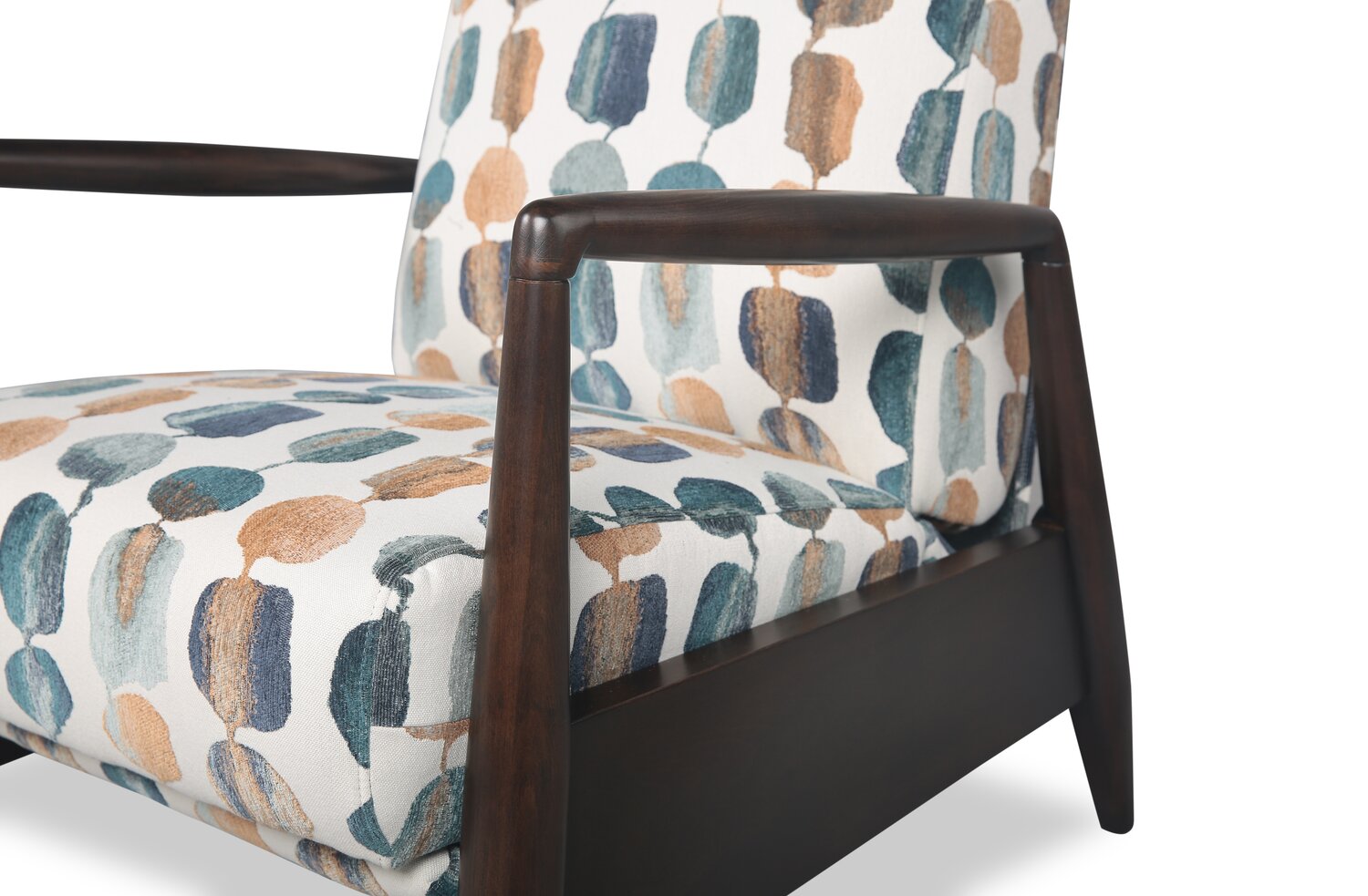 | Accent Details | Wooden armrests and legs complement the darker tones of the fabric pattern, making the colours stand out. |