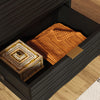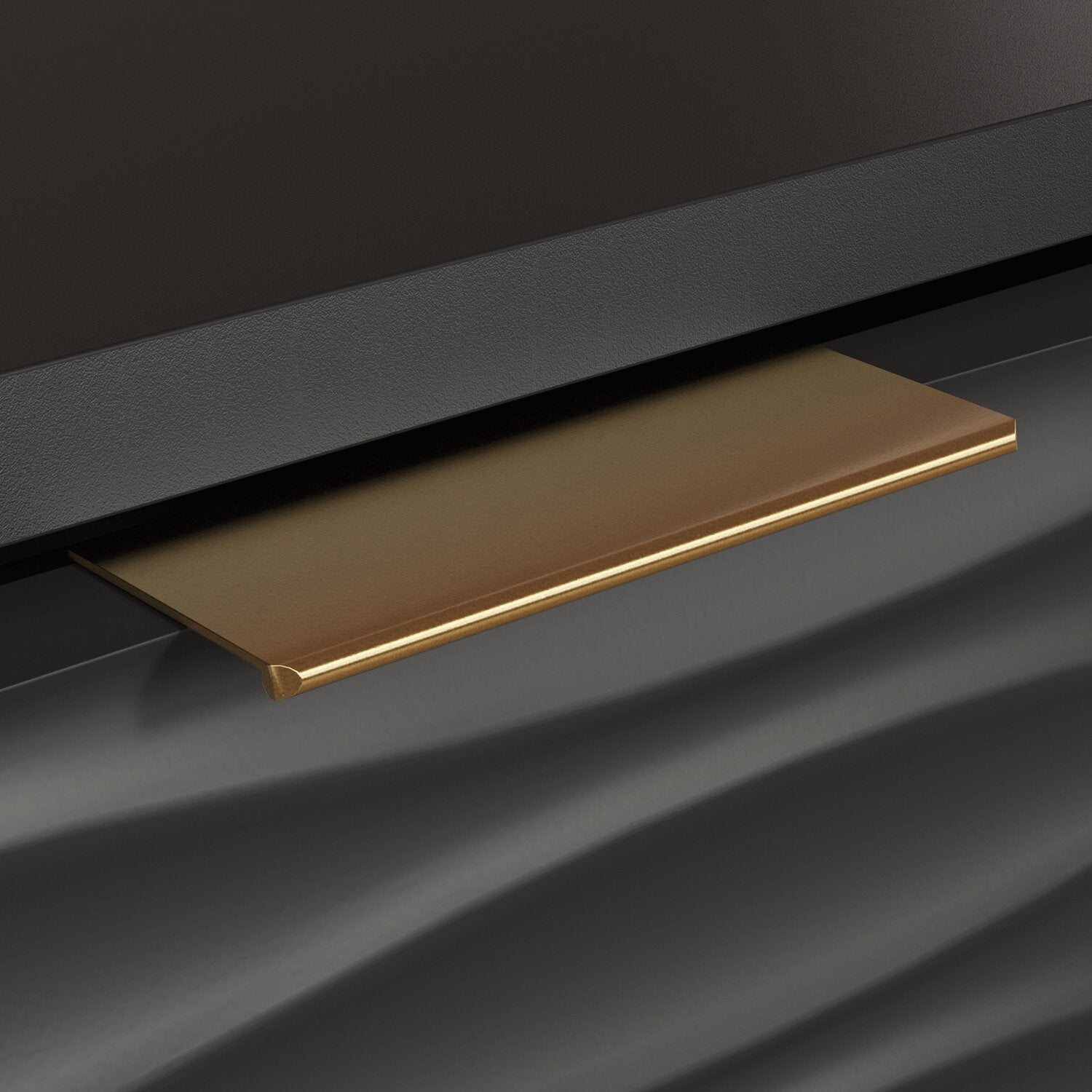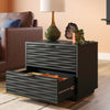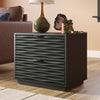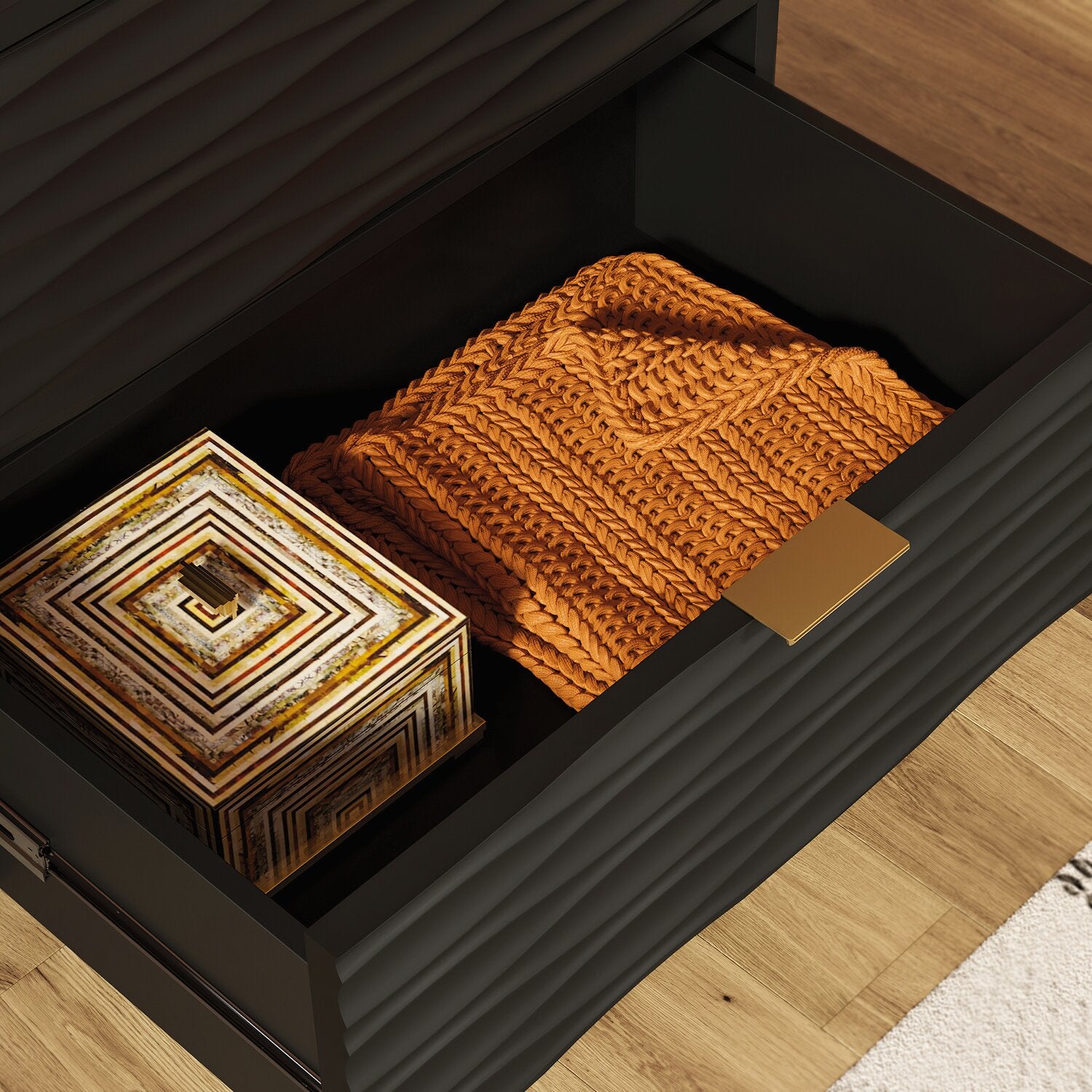 This Reese cabinet is a stylish and functional addition to your space, bringing a modern, chic vibe to your bedroom, living room or office. Featuring two spacious drawers, it's perfect for organizing essentials like remotes, magazines, books and work-related items. The top surface offers ample space for a printer or decorative accents such as a lamp, candle or vase. Plus, a striking wave pattern on the drawer fronts adds a unique, textured detail that catches the eye. Finished in sleek black and designed to look polished from all angles, this versatile piece will effortlessly elevate the aesthetics of your home or office.