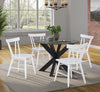 Notable for its neutral hue and minimalist design, this Remi dining table will bring a charming element to your dining room or kitchen. The tempered glass tabletop brings an open concept to this piece, giving the area around it a bright and lightweight feel. Plus, a cross-legged base is stable, supportive and gives this piece a unique modern flair. With its beautiful black finish, this piece will fit within a variety of home settings while effortlessly elevating its surroundings. Thanks to its durable frame, the Remi will keep you dining in style for many years.