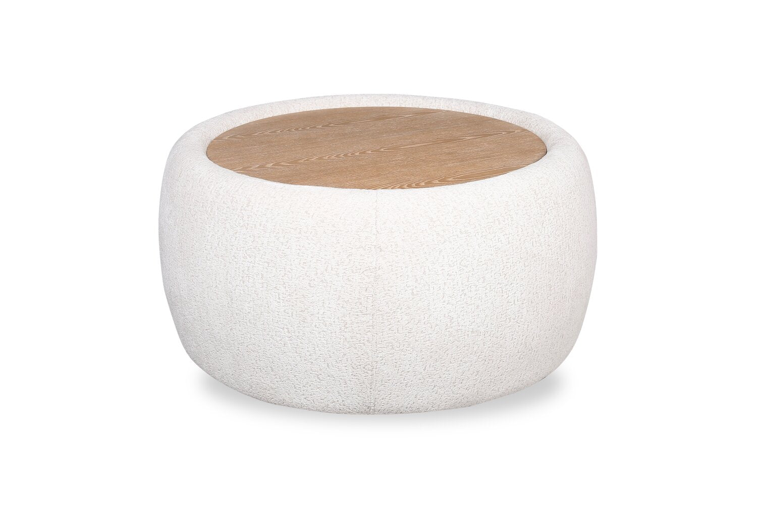 | Accent Details | A natural wood top blends beautifully with the high-pile alabaster chenille fabric. |