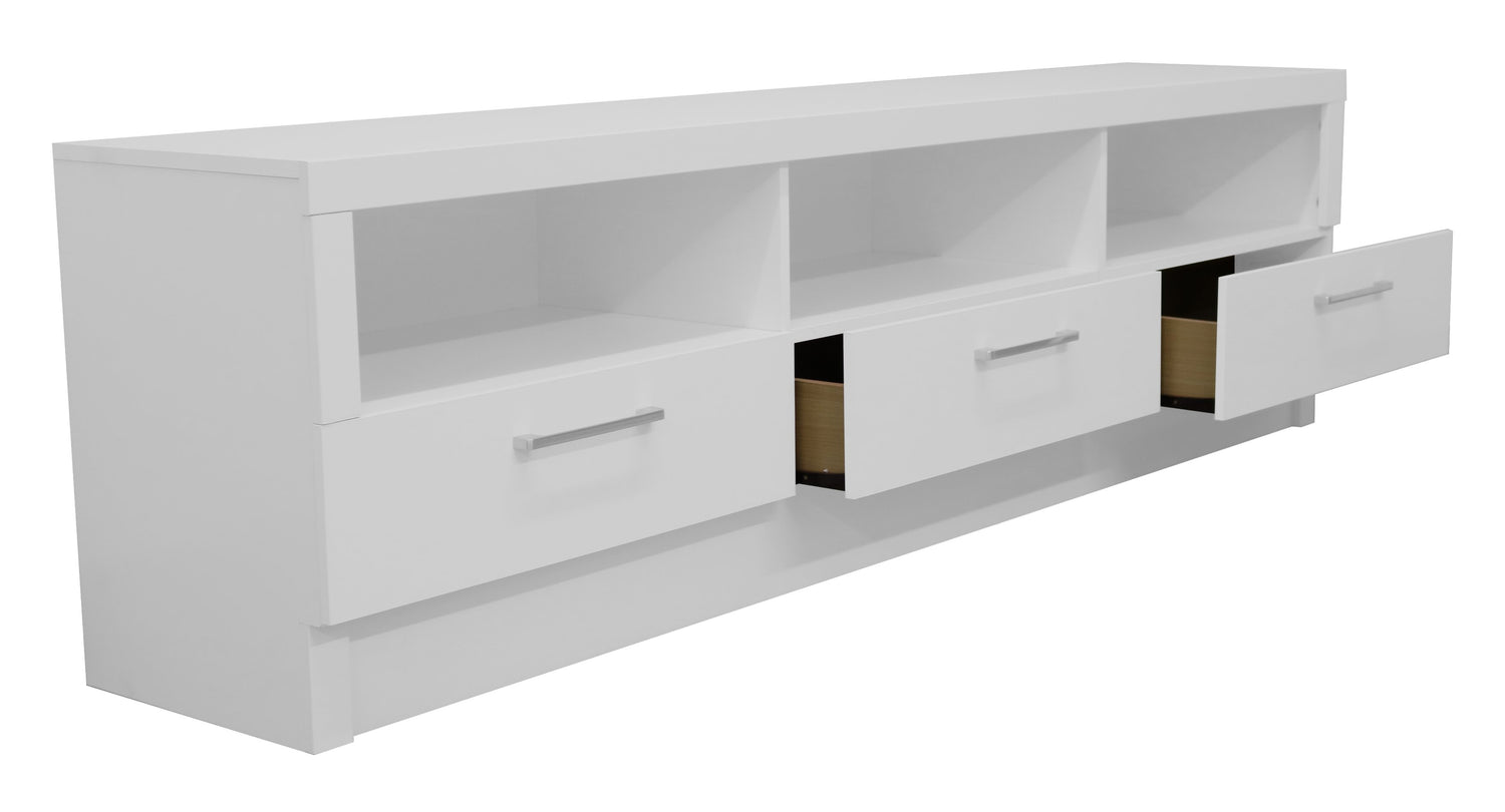 | Accent Details | Slim metal handles across the front complement this stand's smooth design. |