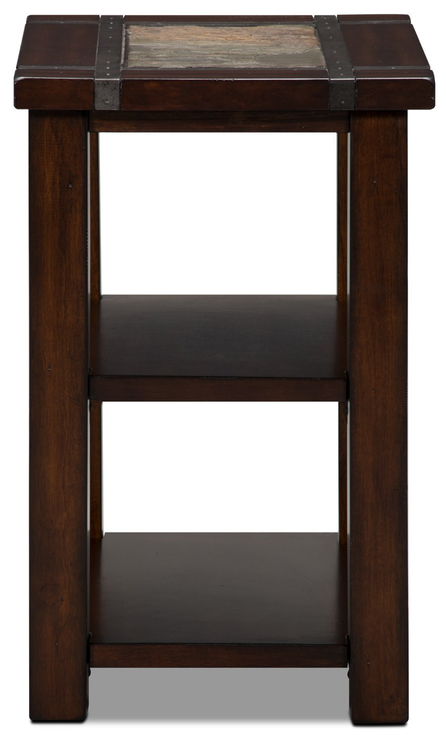 You’ll adore the beauty and value this Roanoke sofa table exudes. The genuine slate inlay boasts a smooth surface that radiates modern style, while the cherry wood colour adds richness to any room. The handy bottom storage is perfect for keeping magazines and other household items within an arm’s reach. With quality construction you can kick back and admire this table through endless gatherings with friends and family.