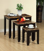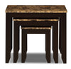 Make a bold statement in your living room with this Roma nesting table package. The marble-look tabletops draw the eye with their muted shades of cream, onyx and grey. The durable and beautiful surface is the perfect place for drinks and decorative accents. A sophisticated cappuccino finish wraps the base of the tables for a contemporary flair. Stylish, tapered legs provide the finishing touch and offer a sturdy foundation for lamps, potted plants and decor.