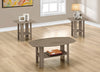 Refreshing your living room is a breeze with this Rosario three-piece table package. Featuring a coffee table and two end tables finished in dark taupe, this set easily coordinates with a variety of colour schemes. Modern angles paired with a minimalist design give these tables a contemporary look perfect for any casual space. Plus, a lower shelf on each table offers an ideal place to keep magazines, books or accent pieces.