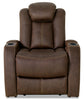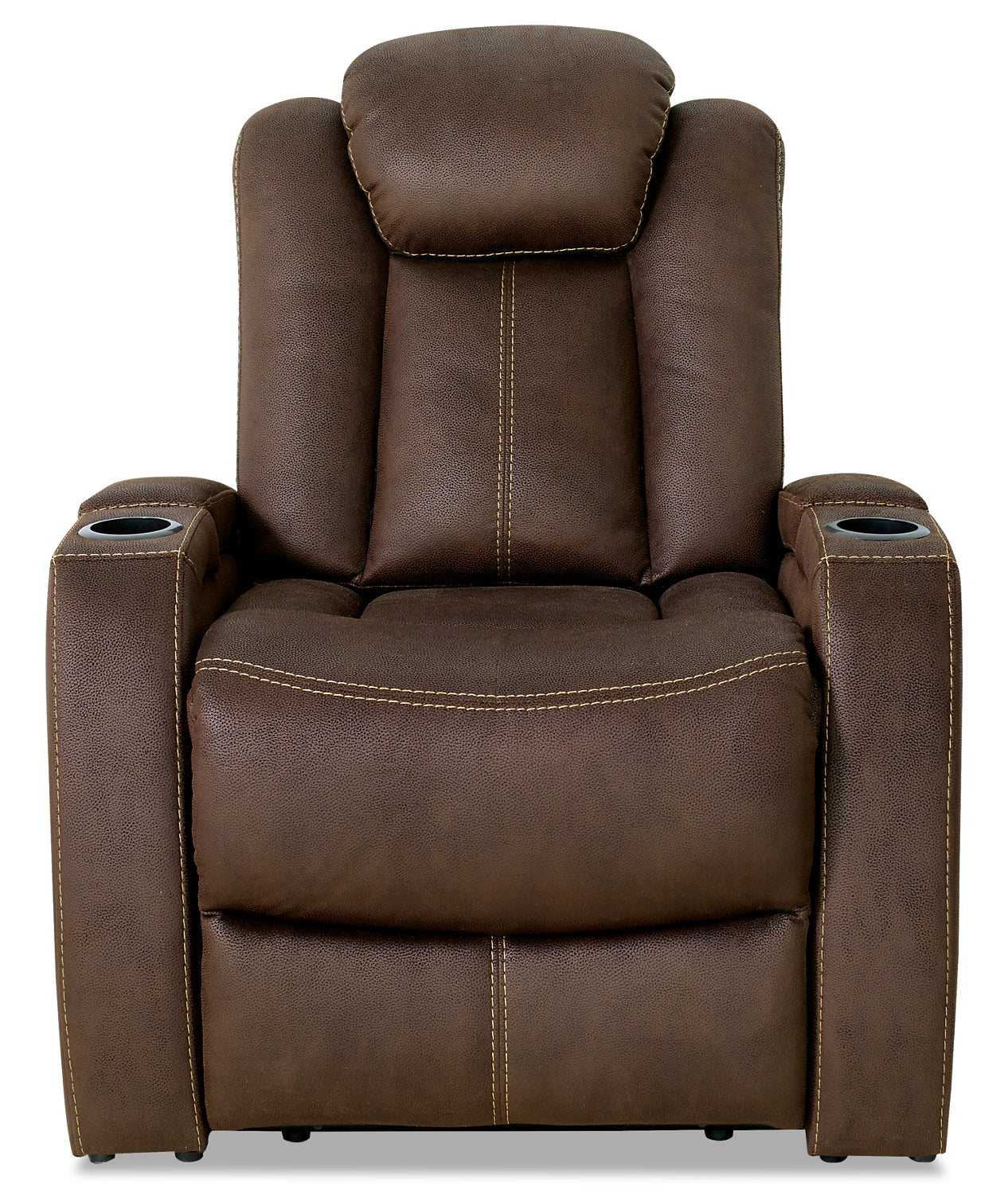Make yourself comfortable by taking a seat on this chocolate-coloured Ross power reclining chair.Covered with elegant faux suede, the entire seating area is packed with high-density foam to keep you cozy time after time. A pillowy headrest and curved seat highlight the relief you will feel when you relax on this chair. On the stylish side, the low-profile arms and clean lines offer a contemporary vibe to your space. Plus, you can use the power reclining and power headrest buttons to stretch out and enjoy the big game.