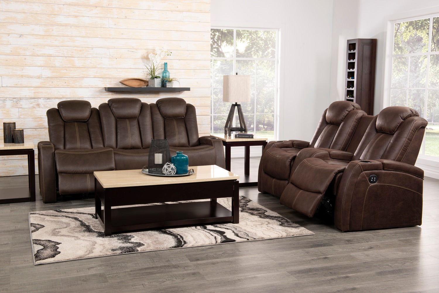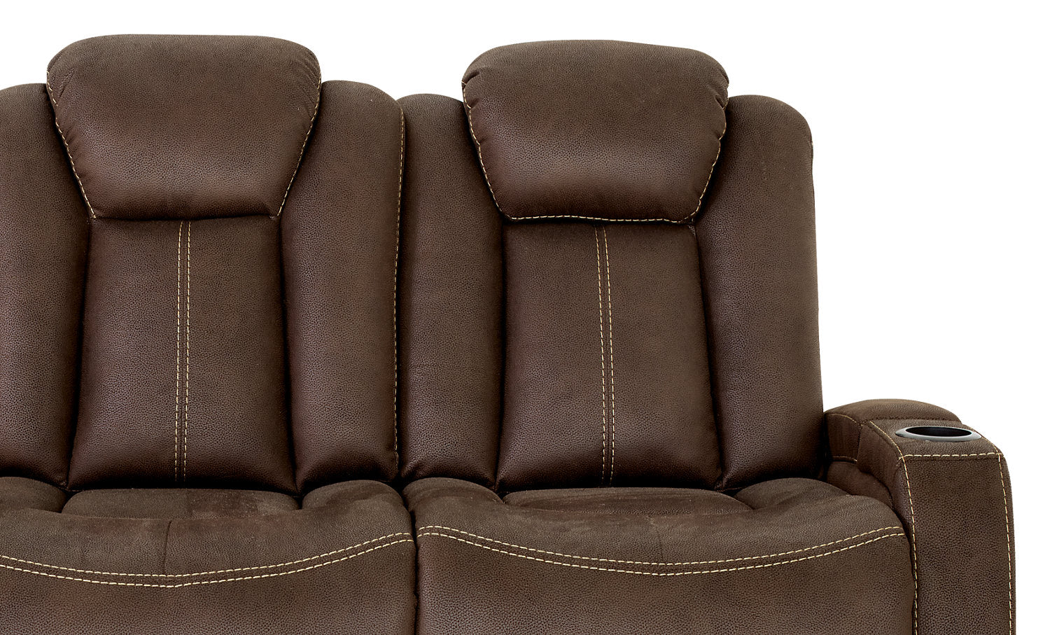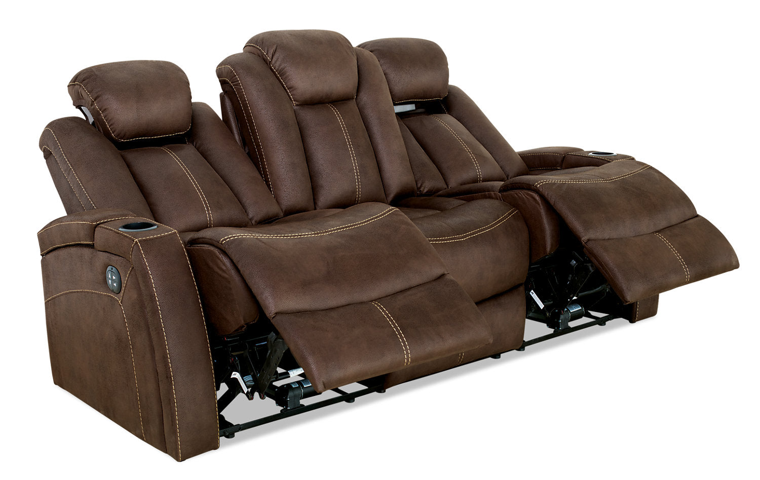 Make yourself comfortable by taking a seat on this chocolate-coloured Ross power reclining sofa. Covered with elegant faux suede, the entire seating area is packed with high-density foam to keep you cozy time after time. Pillowy headrests and curved seats highlight the relief you will feel when you relax on this couch. On the stylish side, the low-profile arms and clean lines offer a contemporary vibe to your space. Plus, you can use the power reclining and power headrest buttons to stretch out and enjoy the big game.