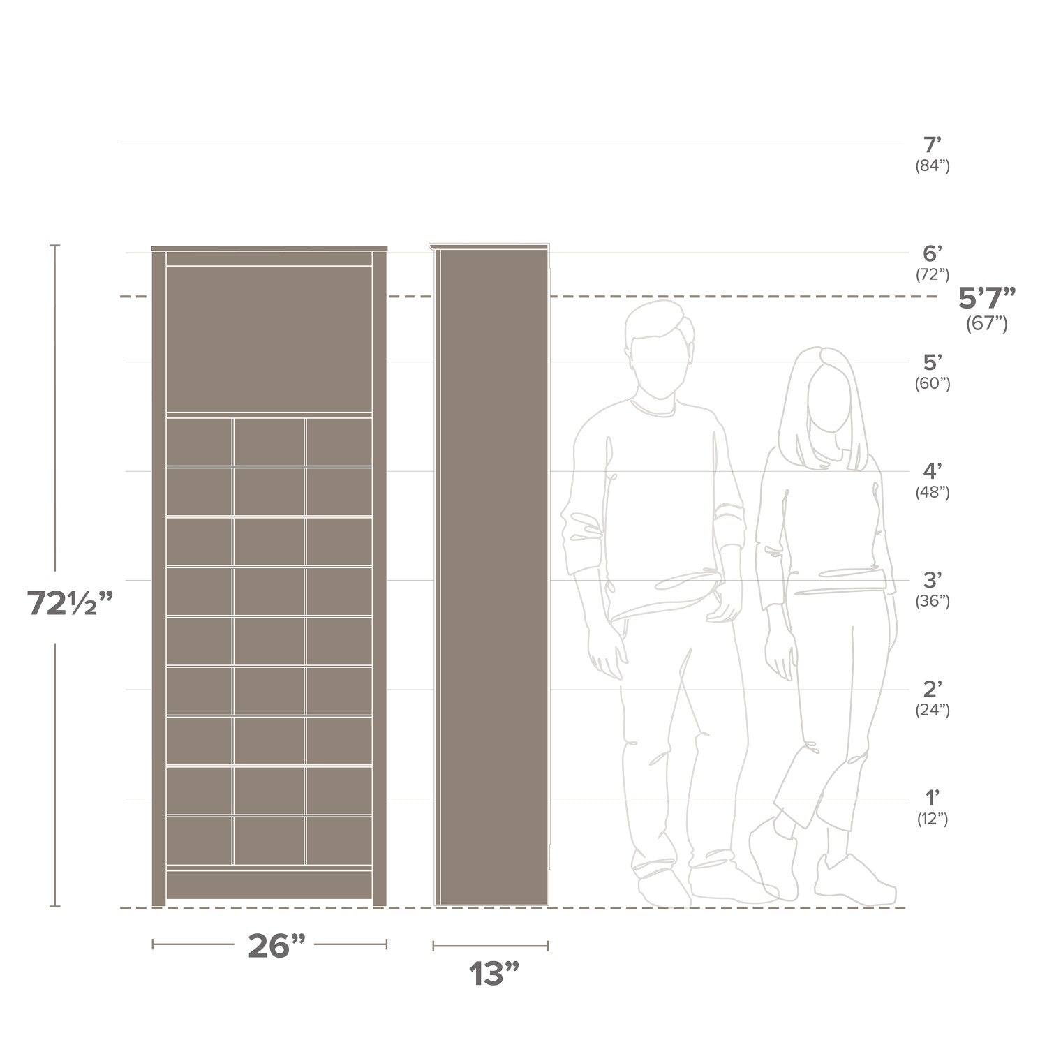 Width: 26" (66.0 cm) Height: 72.5" (184.2 cm) Depth: 13" (33.0 cm)