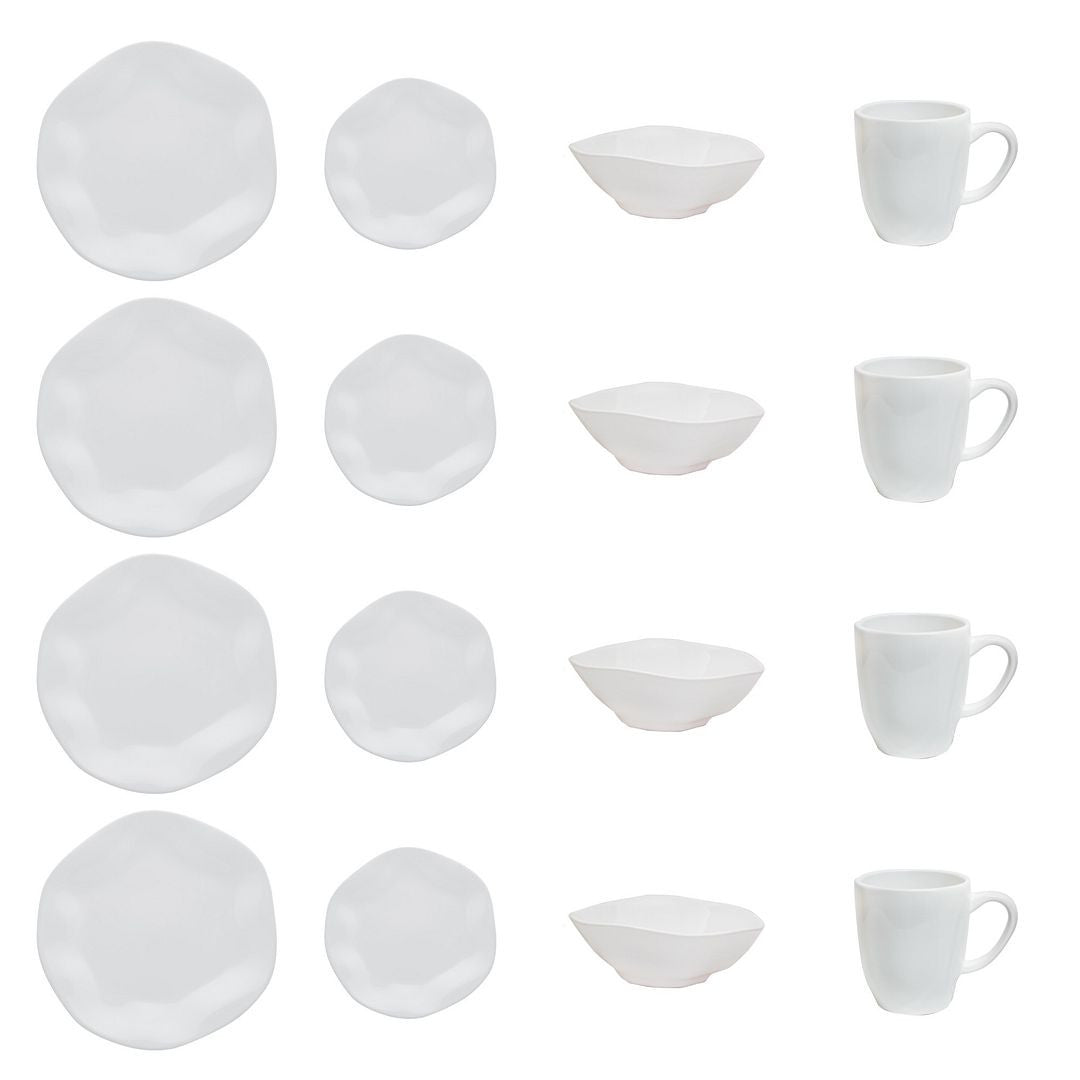 The RYO Dinner Set is a great addition to any dinner table. Bring your friends and family together with this 16-piece set that contains four Dinner Plates, four dessert plates, four Bowls, and four Mugs. The uniquely designed Porcelain dinnerware is perfect for formal or casual dining.