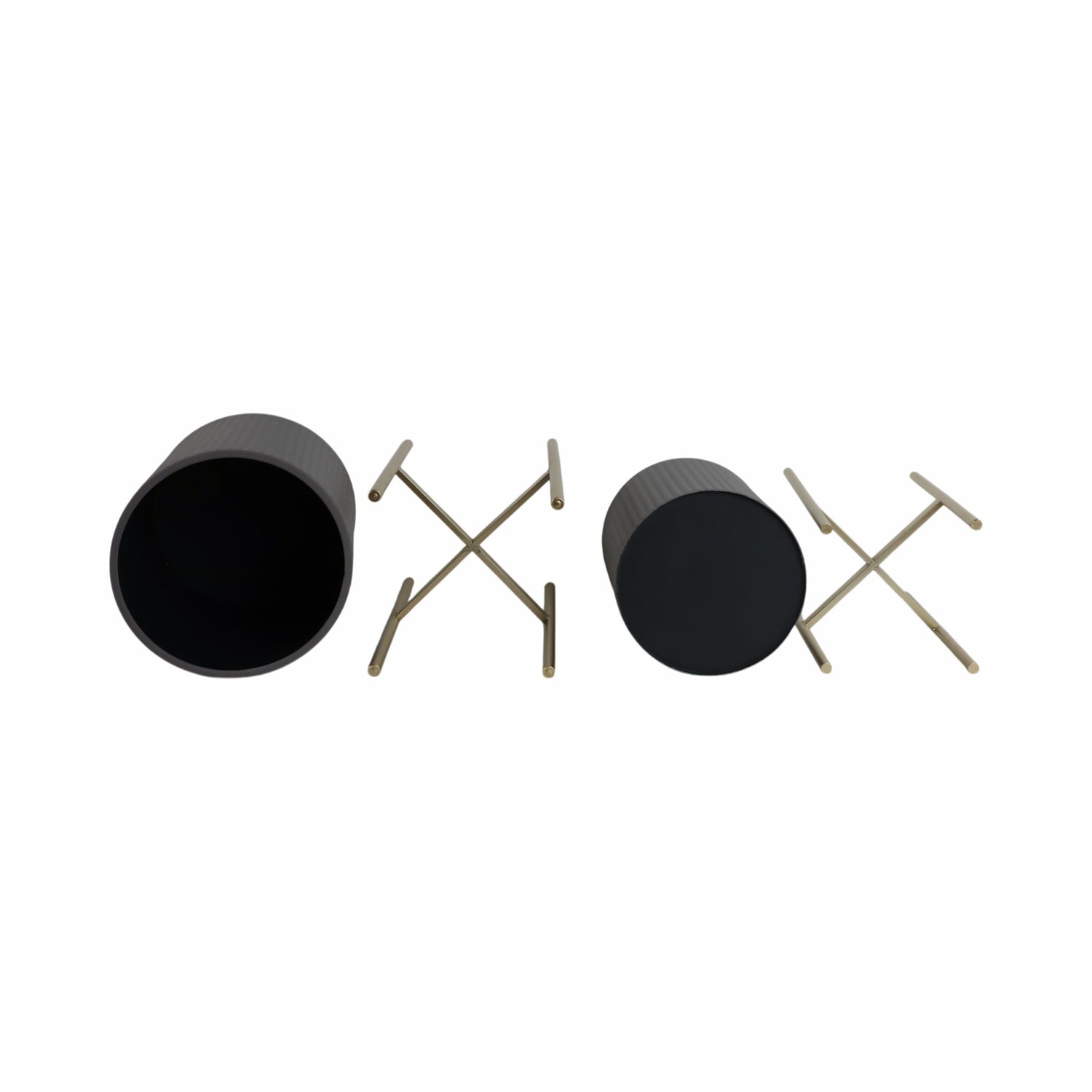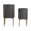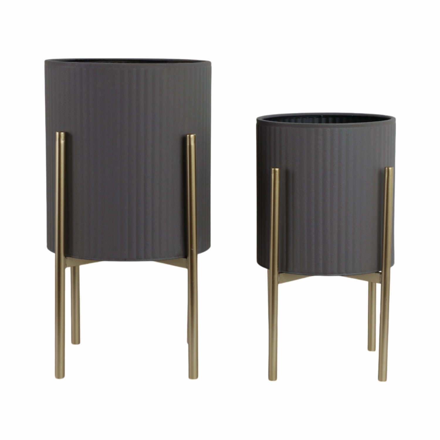 Iron 23" Ridges Grey Planter on Gold Metal Stand - Set of 2