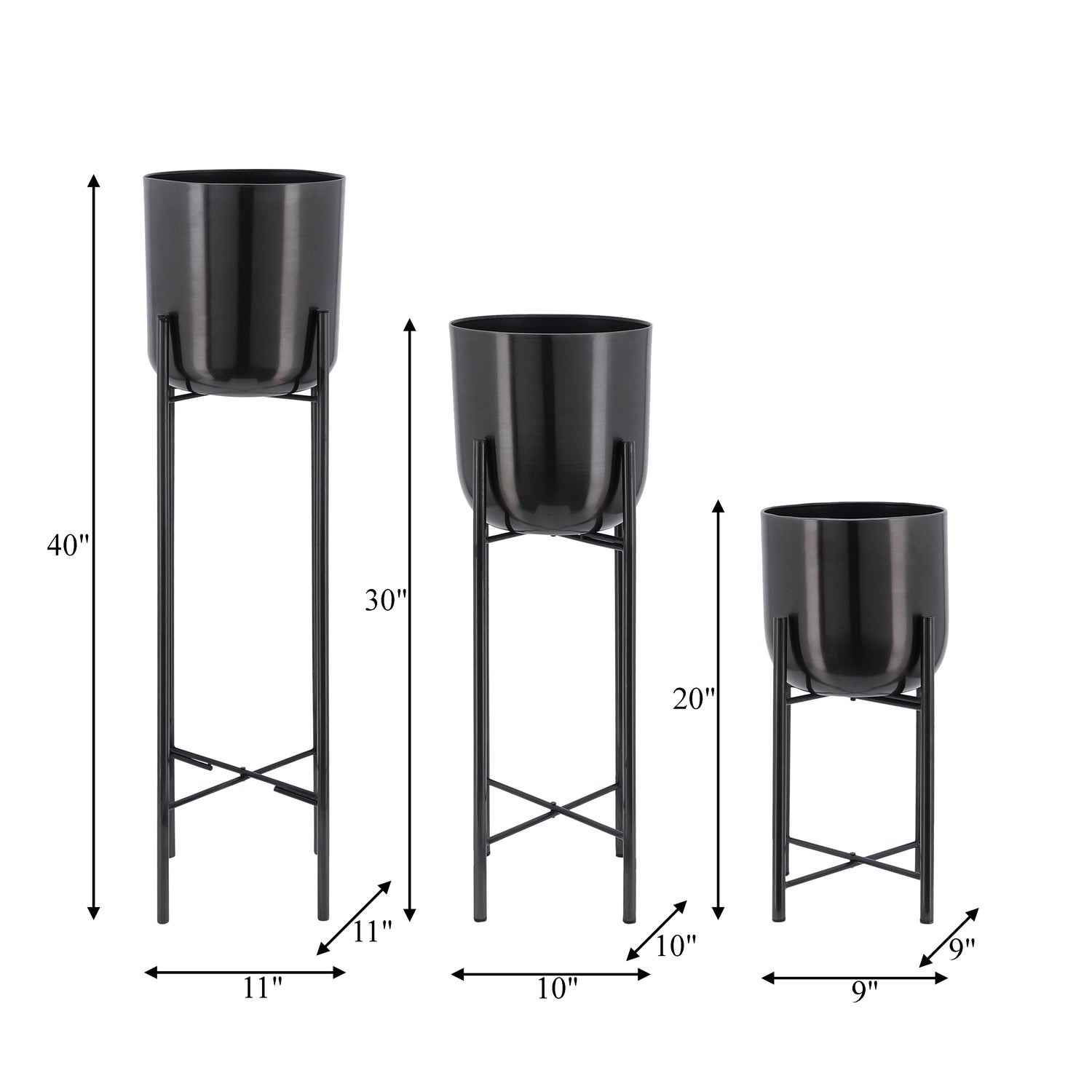 Metal 20"/30"/40" Gunmetal Grey Planter on Stand - Set of 3