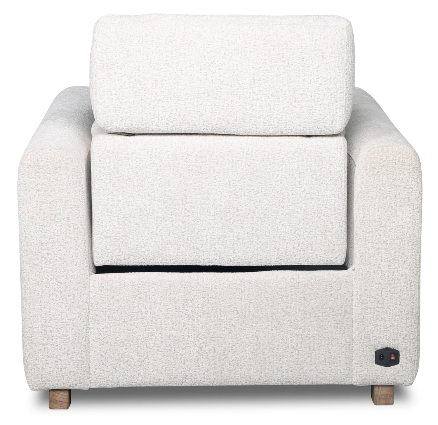 | Accent Details | Light wood trim blends well with the alabaster white upholstery, creating a casual and luxurious appearance. |