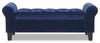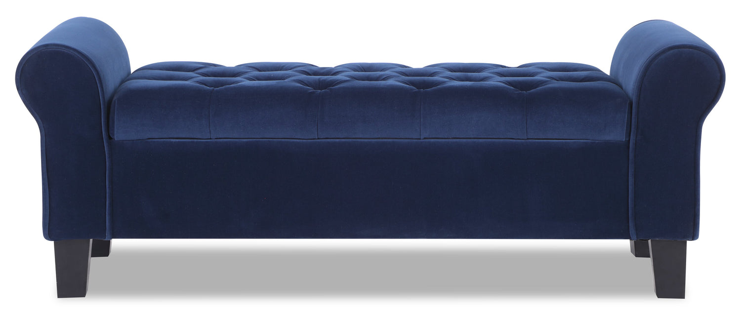 For handy storage with a generous helping of chic style, treat yourself to this elegant Sadie storage bench. Perfect for storing blankets or seasonal clothes, place this in your living room or bedroom to keep things tidy and enjoy exquisite style. Rolled arms give a classic presentation, while the fabric is filled with soft foam and button-tufted for a traditional look. This piece is made with a combination of wood types for sturdy construction so this plush storage bench is as durable as it is charming.