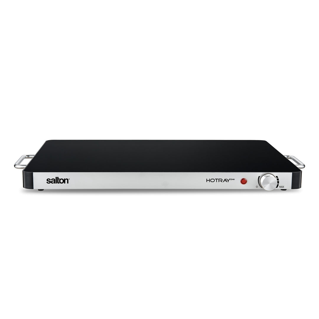 Elevate your hosting game with the Salton Hotray XL warming tray! Crafted with durable tempered glass, its ample warming surface of 21” x 16” ensures enough space for all your dishes. Just plug in, heat up, and keep your food warm effortlessly. Take control with its variable temperature settings, illuminated for easy monitoring. With cool-touch handles, serving is worry-free and safe. Experience efficient and uniform heating, ideal for various cookware types. Cleanup is a breeze with its easy-to-clean glass surface. Plus, with overheat protection, you can keep your food warm without a second thought. Entertaining made easy, courtesy of Salton.