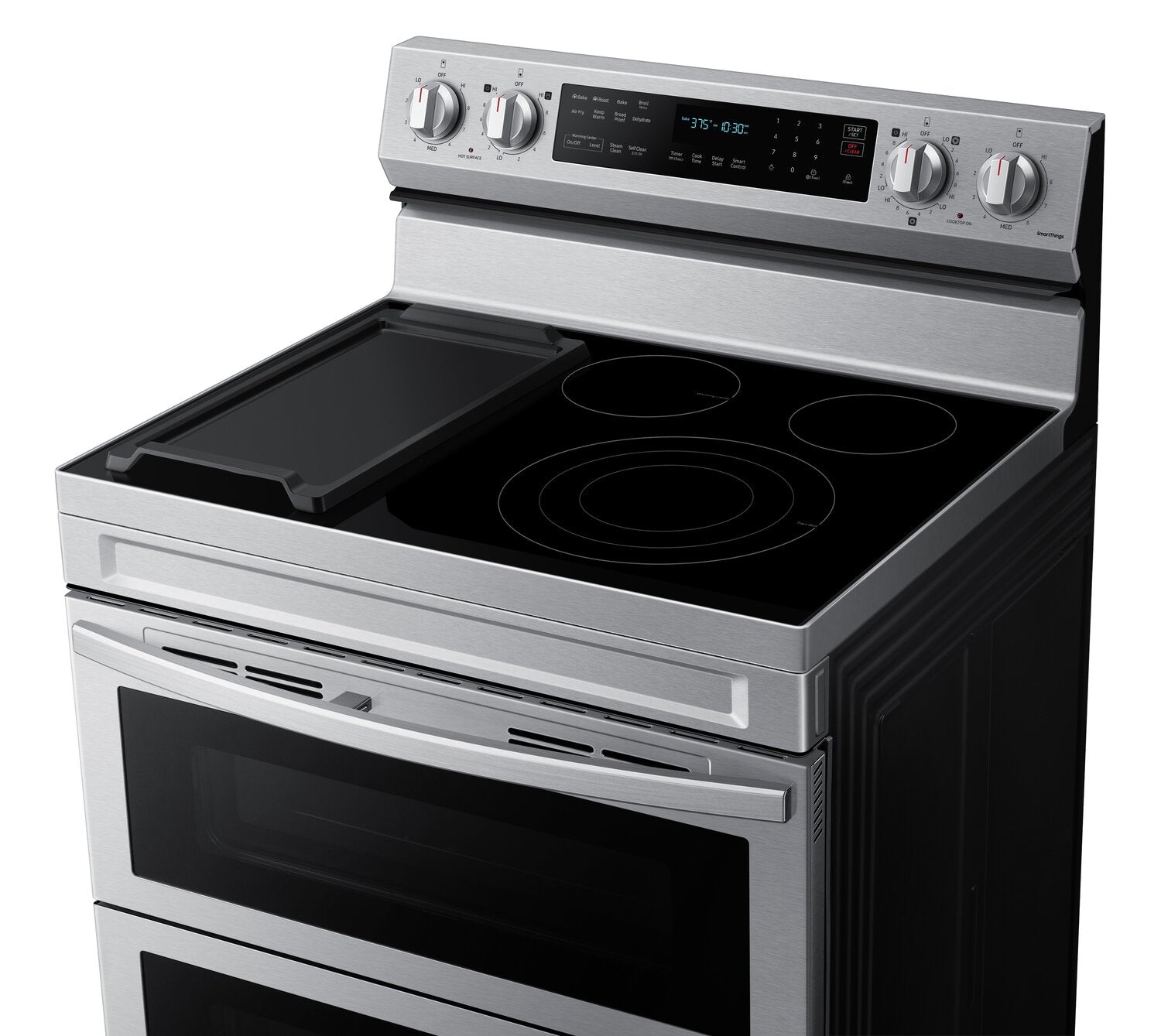 Premium Stainless Design: Air Fry with Tray: Aluminum Griddle: Wi-Fi Connectivity and Voice Control: SmartThings Cooking: Fingerprint Resistant Finish: True Convection: 3.0kWh Fast Boil With Flexible Cooktop: |
