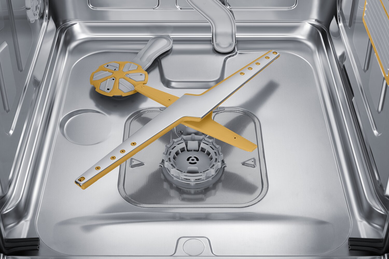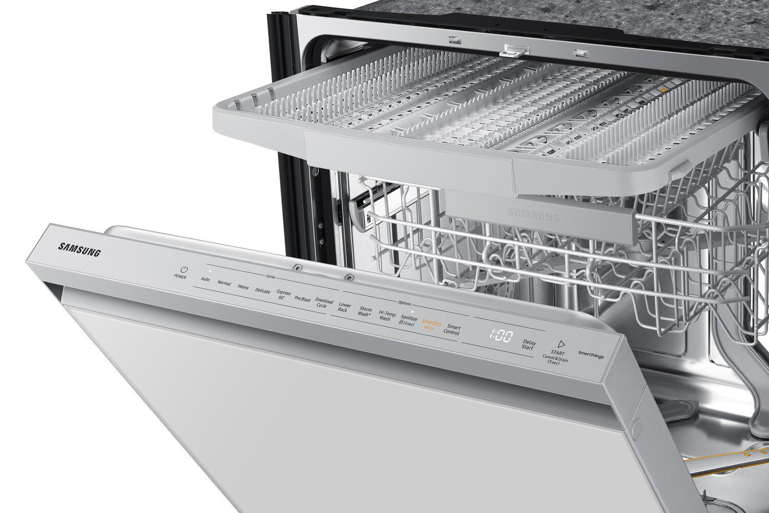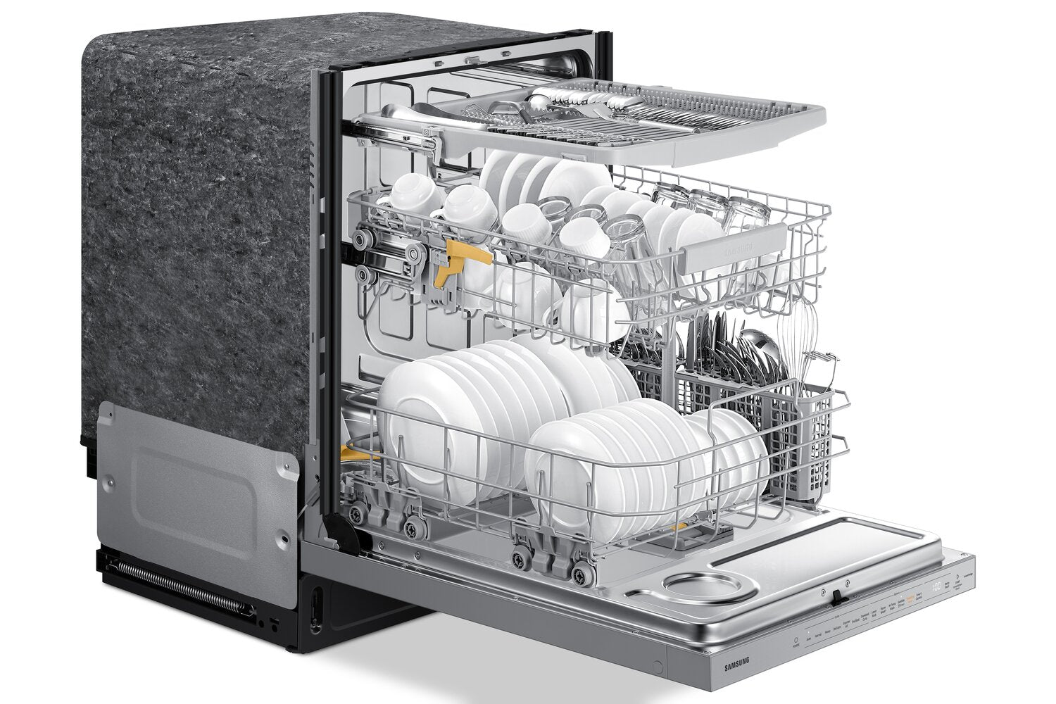For thorough cleaning and customizable style, give this Samsung Bespoke dishwasher a go. The StormWash+ system makes use of a powerful jet spray and dual wash arms to clean your dishes from every angle, so no grime is left behind. Plus, the whisper-quiet operation means you can run the dishwasher while everyone’s asleep. Best of all, you can make this dishwasher your own – the panel-ready design lets you install a custom front panel (not included) over the door to create a look that’s perfect for your kitchen.