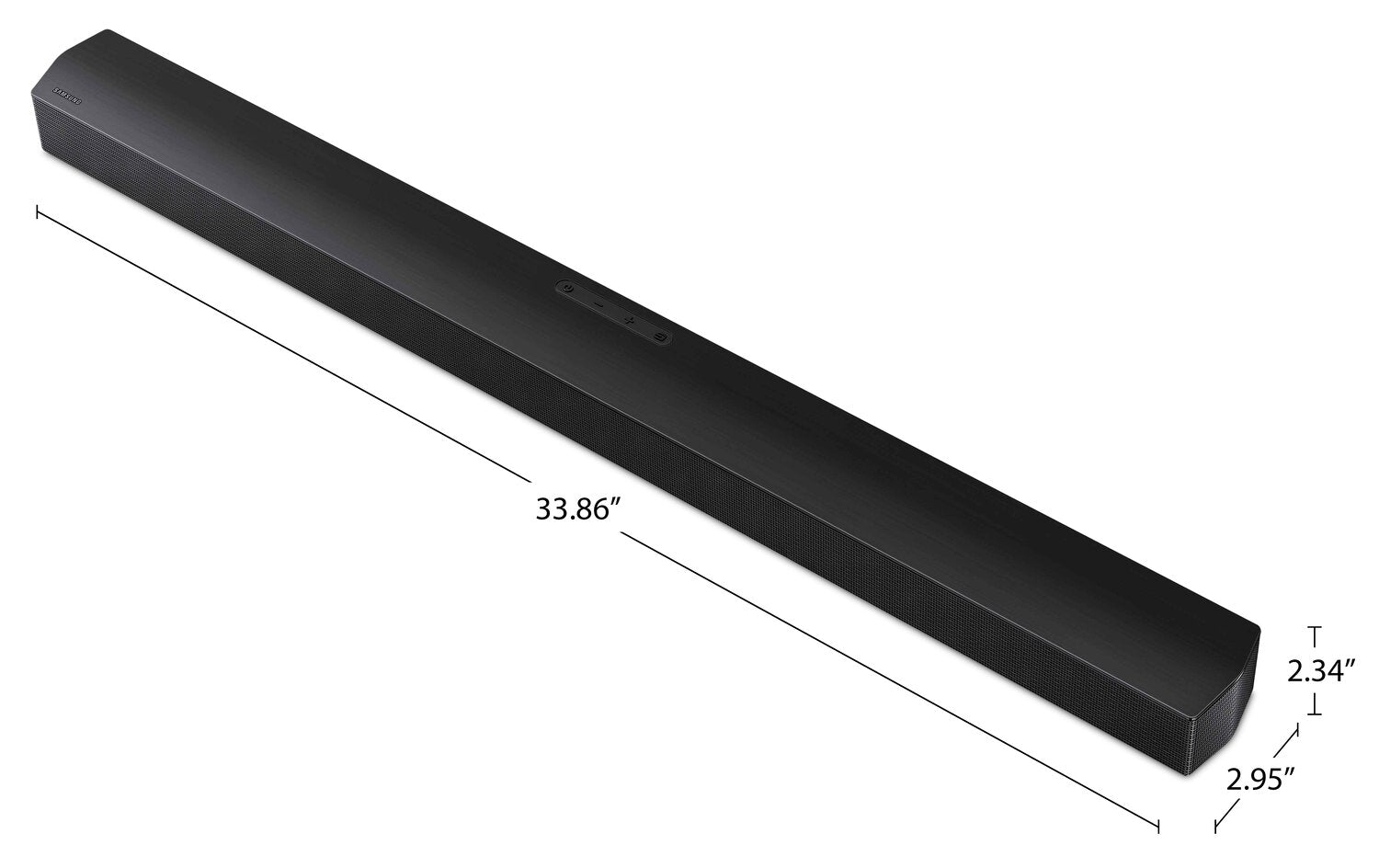 Width: 33.9" (86.1 cm) Height: 2.3" (5.8 cm) Depth: 3" (7.6 cm)