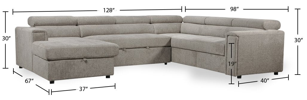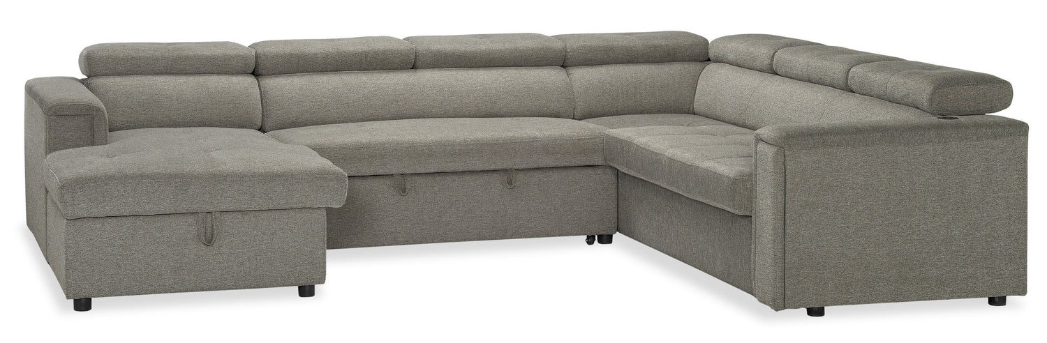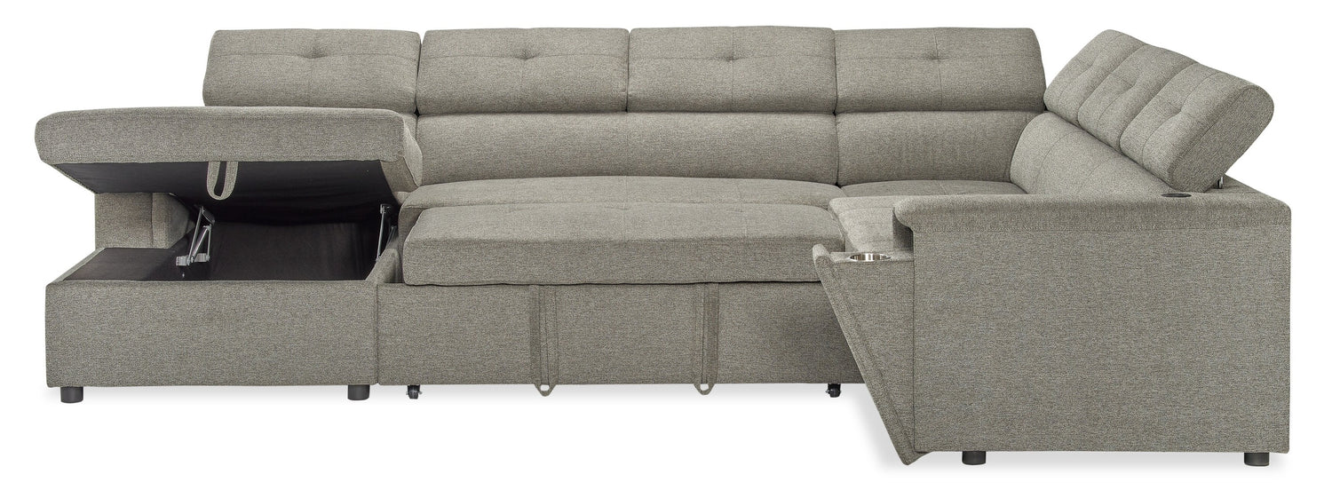 Savvy 3-Piece Left-Facing Linen-Look Fabric Sleeper Sectional with Storage Chaise and Adjustable Headrests - Grey