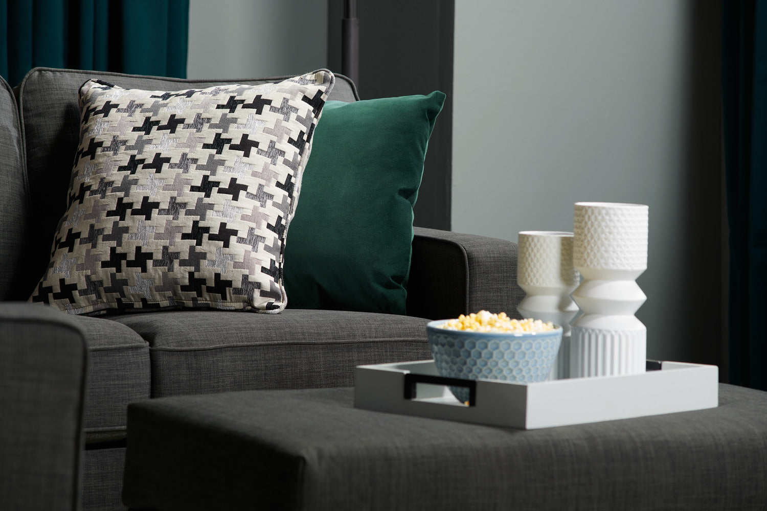 | Accent Pillows | Yes: two in a white, grey and black houndstooth pattern, each filled with Dacron fibre fill. |
